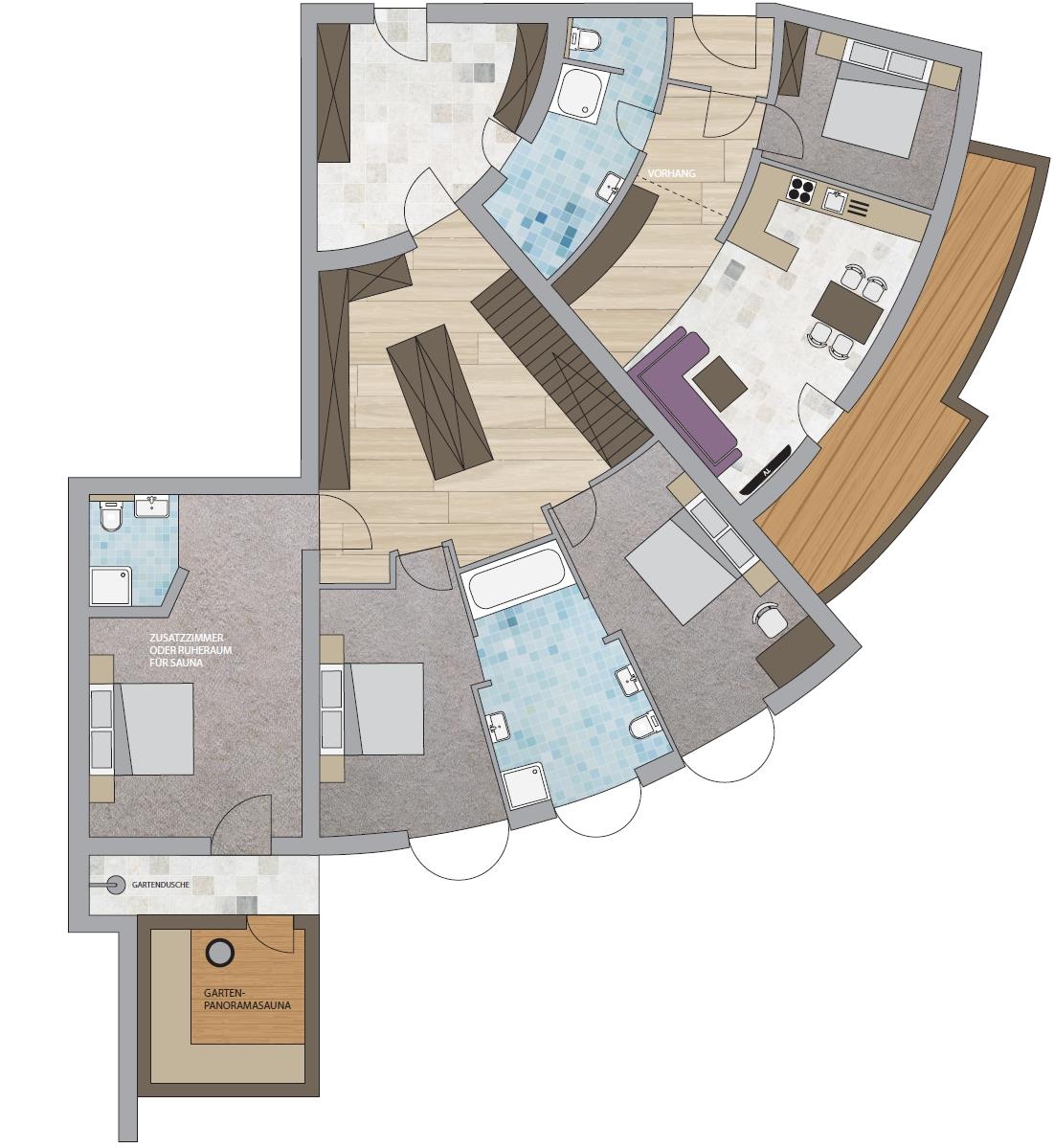 Geeignet für 11 bis 14. Hier sehen Sie einen detaillierten Plan des großräumigen Ferienhauses. Der Ruheraum von der Finnischen Aussensauna kann auch als zusätzliches Zimmer für 2 Personen verwendet werden. Buchungsmöglichkeit während des ganzen Jahres. Ideal für Kinder. Auch Ihre vierbeinigen Freunde sind hier erwünscht. (maximal 2 Hunde auf Aufpreis)