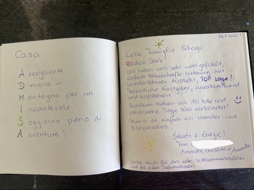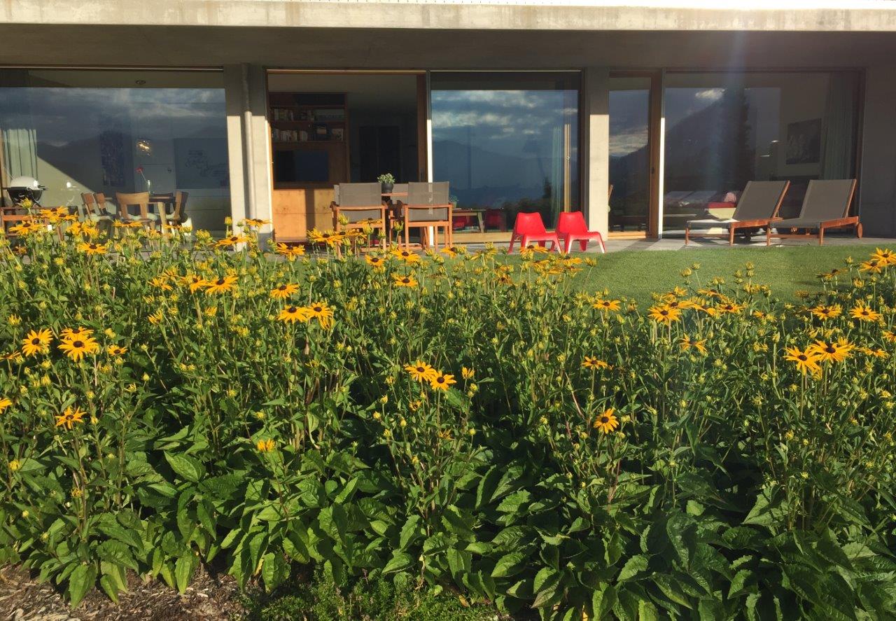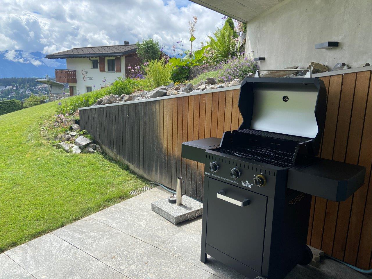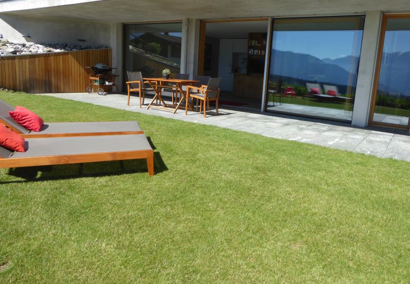 Moderne Ferienwohnung direkt an der Skipiste! Hochwertig ausgestattete gemütliche Wohnung (Valserstein/Eiche). Spektakuläre Aussicht durch Panoramafenster auf Flims und die Bergkette. Die Wohnung verfügt über eine kontrollierte Lüftung, Bodenheizung und Skischuhtrockner. Eine grosszügige Polstergruppe mit einem Couchtisch, ein Flatscreen-TV mit Kabelanschluss und DVD Player sowie ein Schrank mit Spielen und DVDs stellen wir den Gästen gerne zur Verfügung. WLAN ist in der ganzen Wohnung mit gutem Signal kostenlos nutzbar. In einem zusätzlichen Keller befindet sich die Waschmaschine und der Tumbler (wird auch von der Wohnung oberhalb benutzt). Die Wäsche kann anschliessend im Abstellraum getrocknet werden. Auf der grossen, überdachten Terrasse stehen zwei Liegestühle und 4 Stühle mit Tisch für Sie bereit. Ebenso finden Sie einen Gasgrill im grosszügigen Garten vor. Haustiere sind leider keine erlaubt. Das Auto kann am Anreise, bzw. Abreisetag kostenlos in der Tiefgarage gelassen werden. Es hat genügend Platz für Velos, Schlitten und Skis. Ein Zusatzparkplatz kann auf Anfrage für Fr. 10.00/Tag dazu gemietet werden. Im grossen Abstellraum (integriert in der Wohnung) befindet sich ein Gefrierschrank und eine Mikrowelle. Ebenfalls hat es genügend Platz für Skischuhe, Skikleider, Koffer etc.