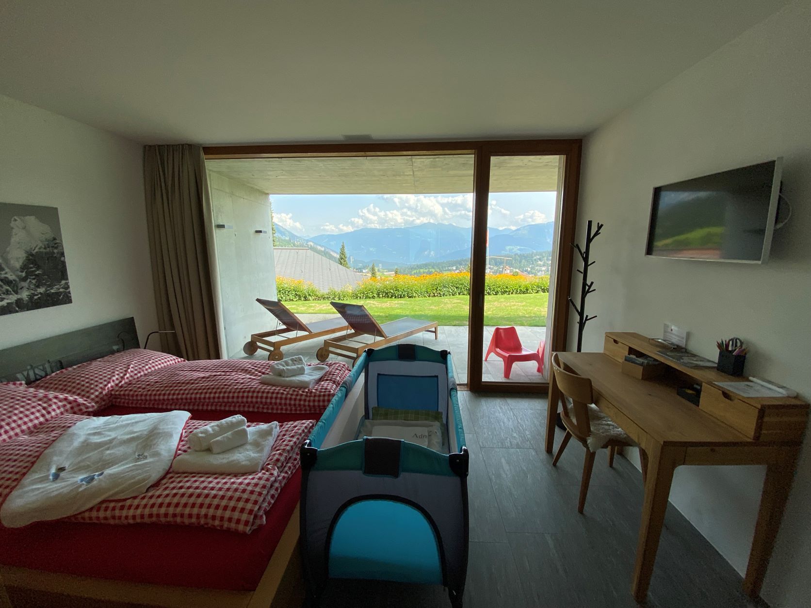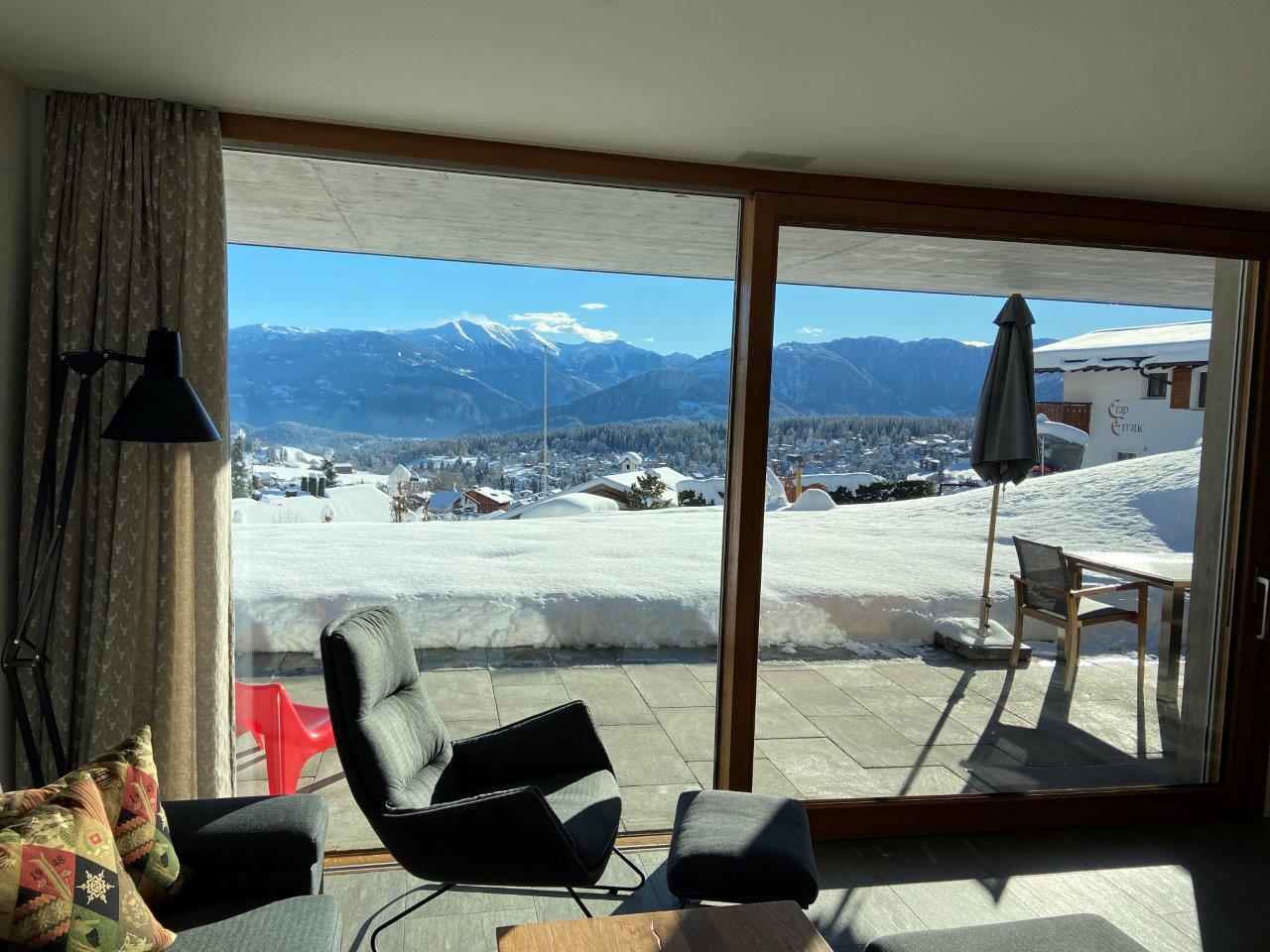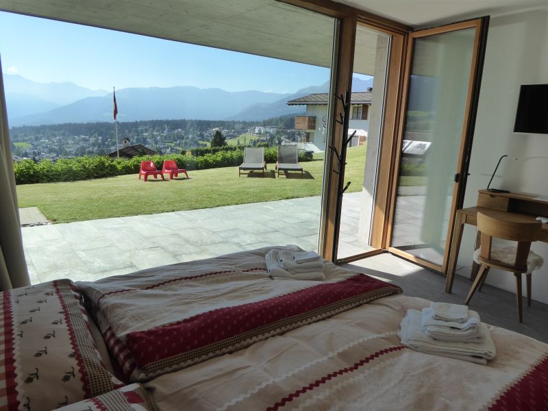 Die sonnendurchflutete Wohnung befindet sich am Südhang von Flims Dorf. Der Skiweg von und zur Piste ist 20 m neben der Tiefgarage. In 10 Minuten erreicht man das Dorfzentrum und in 2 Minuten die Bushaltestelle zum kostenlosen Ortsbus. Die stilvoll eingerichtete Wohnung bietet auf 85 m2 Platz für 4 Gäste. Sie verfügt über ein grosses, lichtdurchflutetes Wohnzimmer mit schöner Panoramaaussicht und Terasse. In zwei Schlafzimmern steht je ein Doppelbett (180cm) wovon beide direkten Zugang zum eigenen Badezimmer haben. Die luxierös ausgestatteten Nasszellen überzeugen mit Regenbrause, Waschbecken und i der Küchenausstattung fehlt es an nichts: Glaskeramikherd, Backofen, separate Mikrowelle, Kühlschrank, Spülmaschine, Nespresso-Kapselmaschine, Fondue- und Raclette-Set, Wasserkocher und Toaster sind vorhanden.
