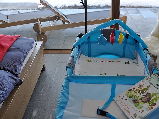 Auf Anfrage kann zusätzlich 1 Kind im Wohnzimmer auf der Ausziehcouch schlafen und/oder ein Baby im Babybett. Küchen- und Bettwäsche und ein Set Frottéewäsche pro Person wird einmalig mit Fr. 26.50 verrechnet, die Endreinigung mit Fr. 190.00. Die Kurtaxe ist inbegriffen.