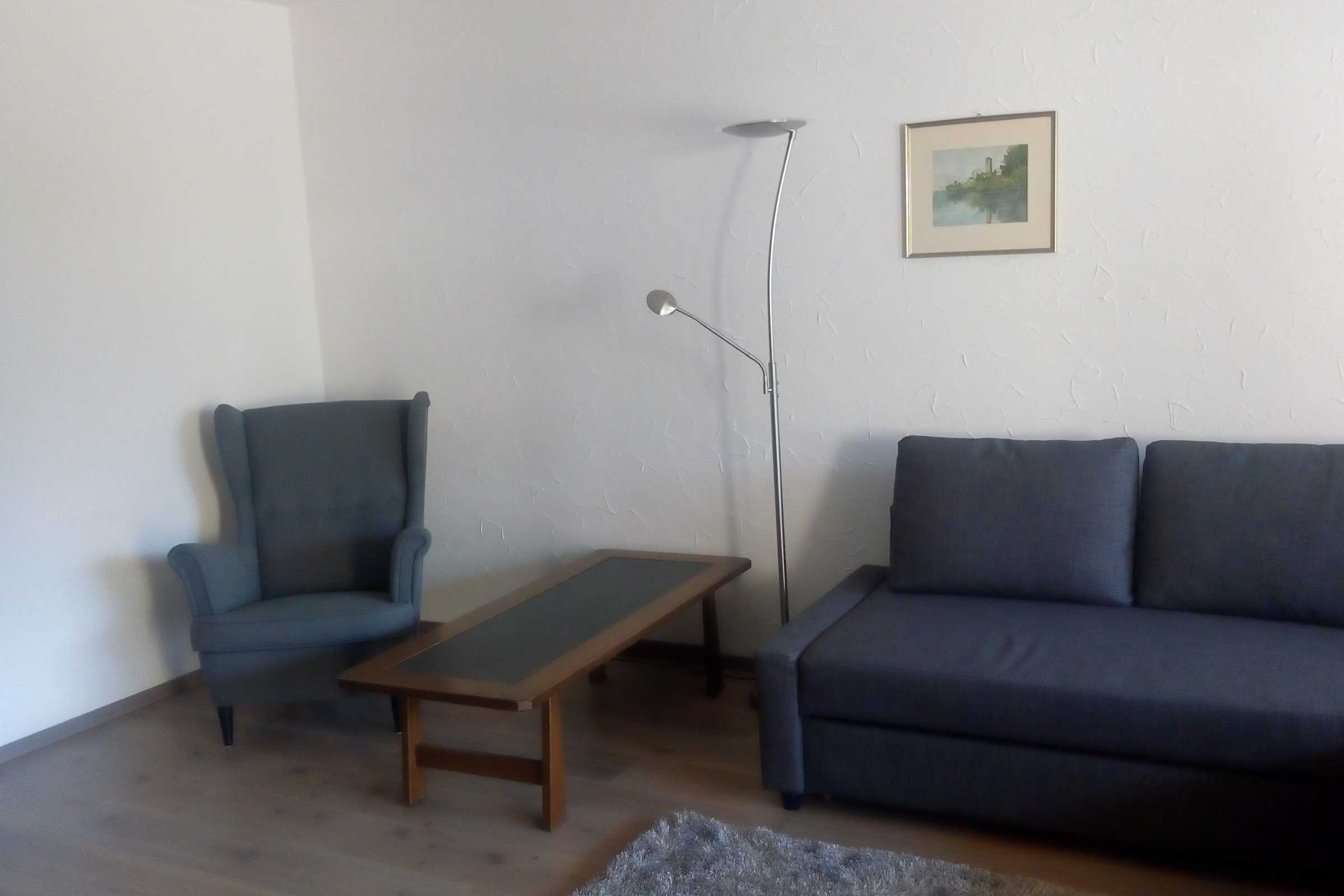 Die zeitgemäss eingerichtete Wohnung verfügt über Holzböden und Plattenbeläge, welche ein gemütliches Ambiente abgeben. Das Badezimmer ist mit einer Waschmaschine ausgestattet. Durch die erhöhte Lage im Haus fällt viel Licht und Sonne ein. Wundervolle Aussicht in die umliegende Bergwelt.
