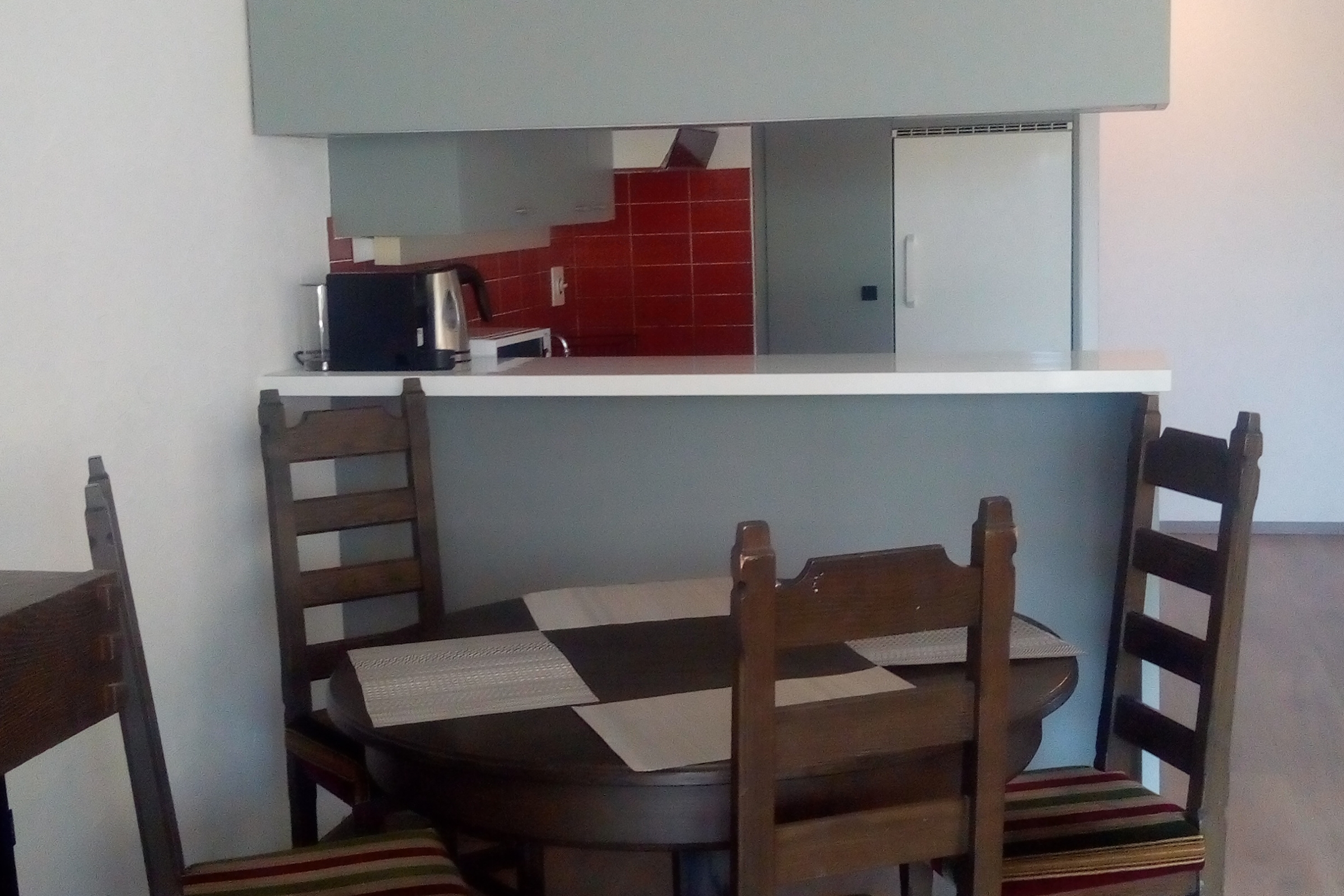 Die Ferienwohnung verfügt über ein Schlafzimmer mit 2 Einzelbetten ein Wohn- / Esszimmer mit Schlafsofa für 2 Personen ein Badezimmer mit Bad/WC eine offene Küche Inneneinrichtung