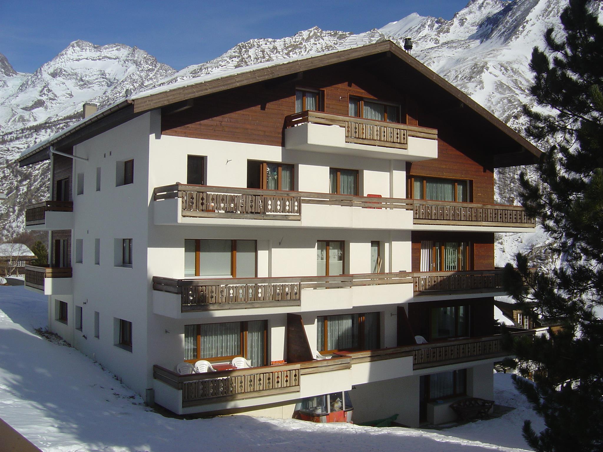 3-Zimmer-Dachwohnung mit herrlicher Aussicht auf die Saaser Bergwelt, 70 m2, 2 Doppelschlafzimmer (1 mit Lavabo), 1 Wohn-Essraum, Küche mit Geschirrwaschmaschine, Bad/WC mit Föhn, SAT-TV + Radio, Süd-Balkon. Gratis W-Lan