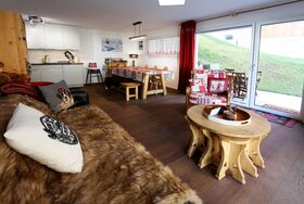 Die Alpine Express ist nur 100 Meter vom Haus Perrine entfernt. Der Skiraum befindet sich auf der gleichen Ebene der Wohnung neben dem Aufzug. Eine Waschküche mit Waschmaschine und Trockner ist ebenfalls im Gebäude vorhanden.