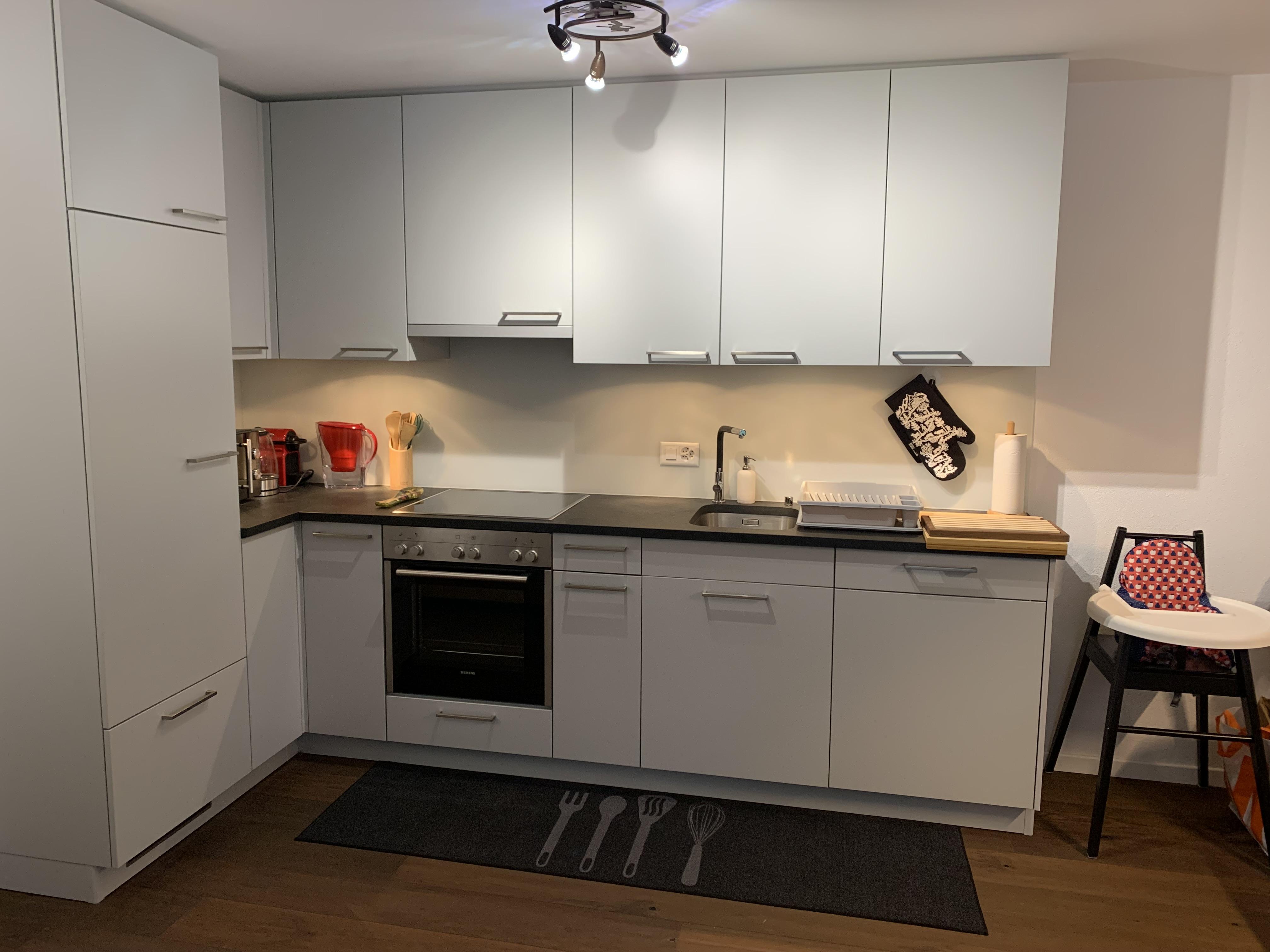Die Küche ist komplett ausgestattet mit Geschirrspüler, Backofen, Herd, Nespresso-Maschine, Toaster, Wasserkocher, Käsefondue und Raclette-Set.