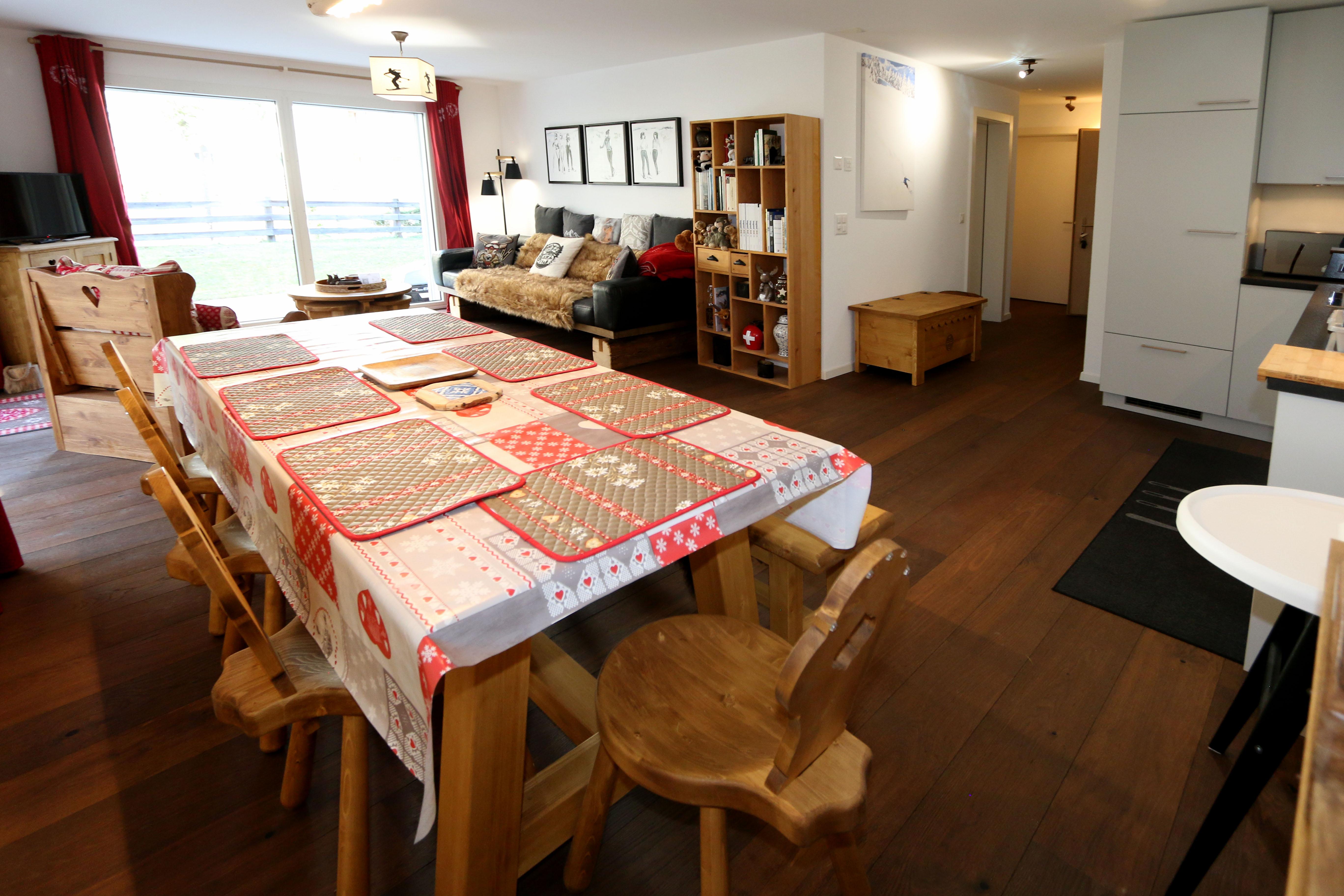 Das Haus ist neben dem Saaser Vispa Fluss und liegt in der Nähe der Alpine Express Seilbahn und dem Meeting Point für Skikurse. Das Apartment ist im Erdgeschoss mit einem großen Garten und Bergblick Richtung Süden und Westen.