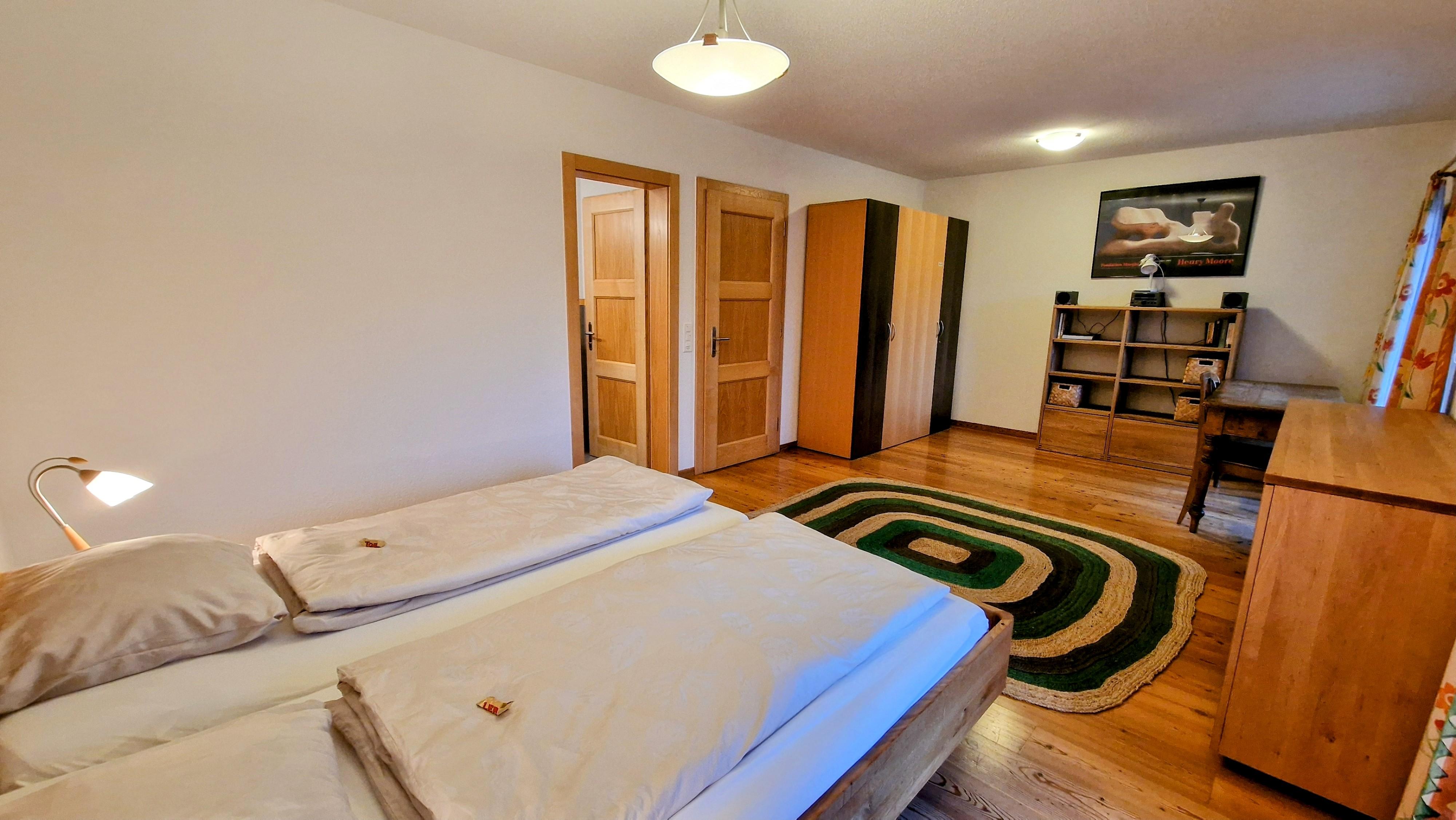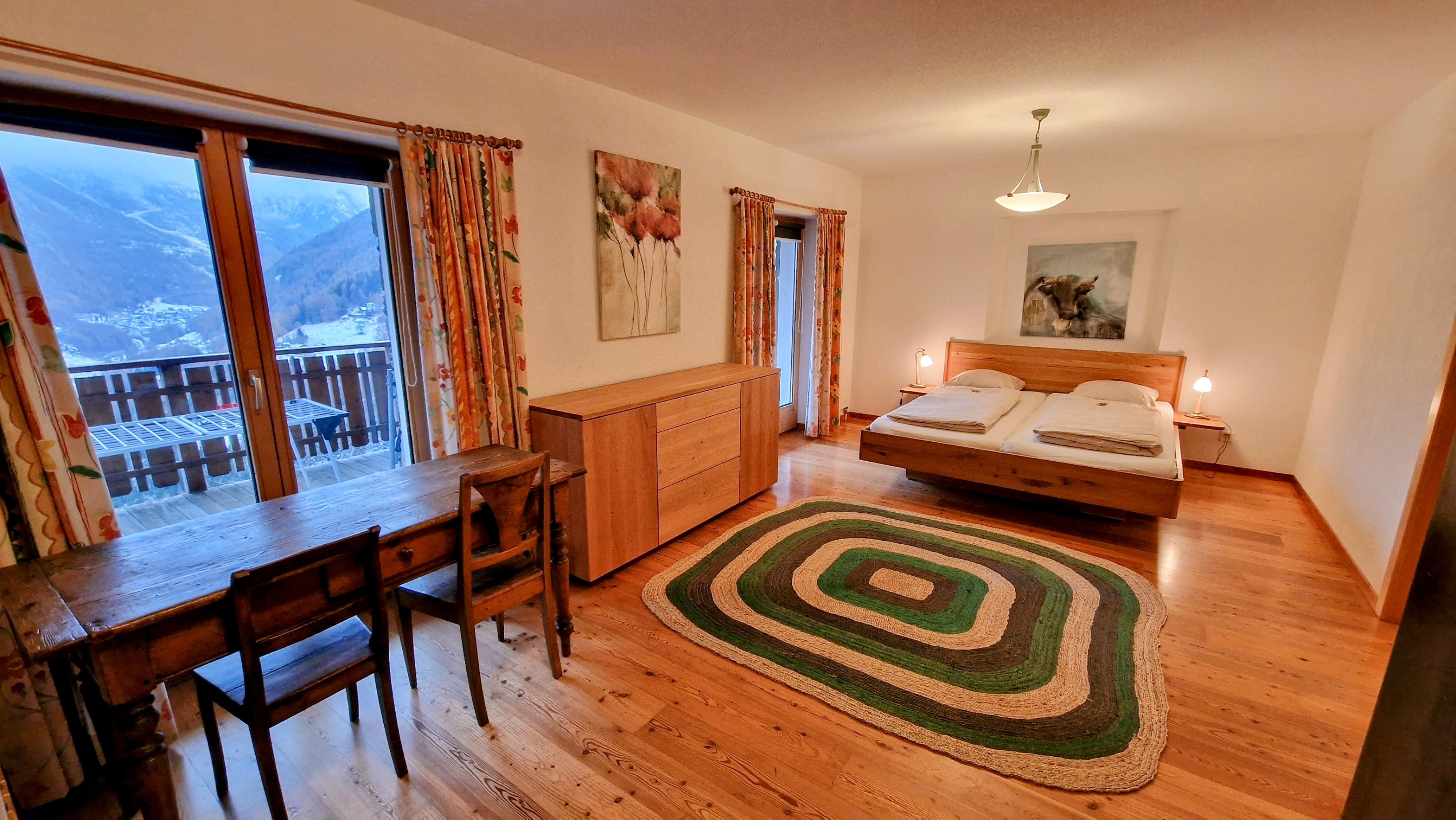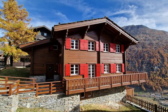 Sehr grosses (180 m2) individuelles Chalet auf 3 Etagen in ruhiger Lage mit herrlichem Blick über das Tal. Bestehend aus 4 Schlafzimmern, 1 Wohnzimmer mit Essecke, moderner Küche, 1 Dusche, 1 Bad, Dusche, WC, 2 WCs und Südbalkon.