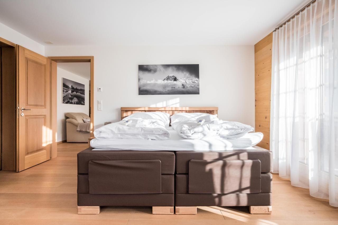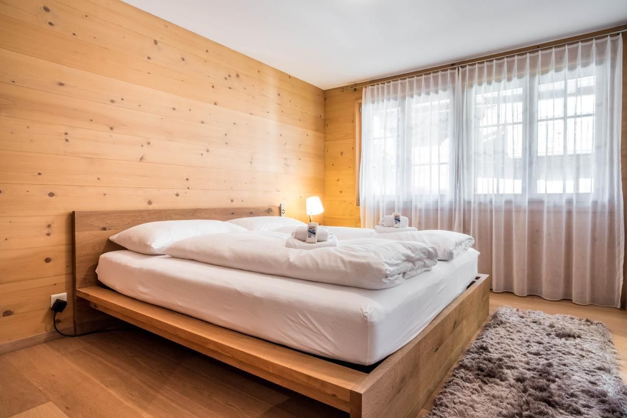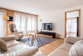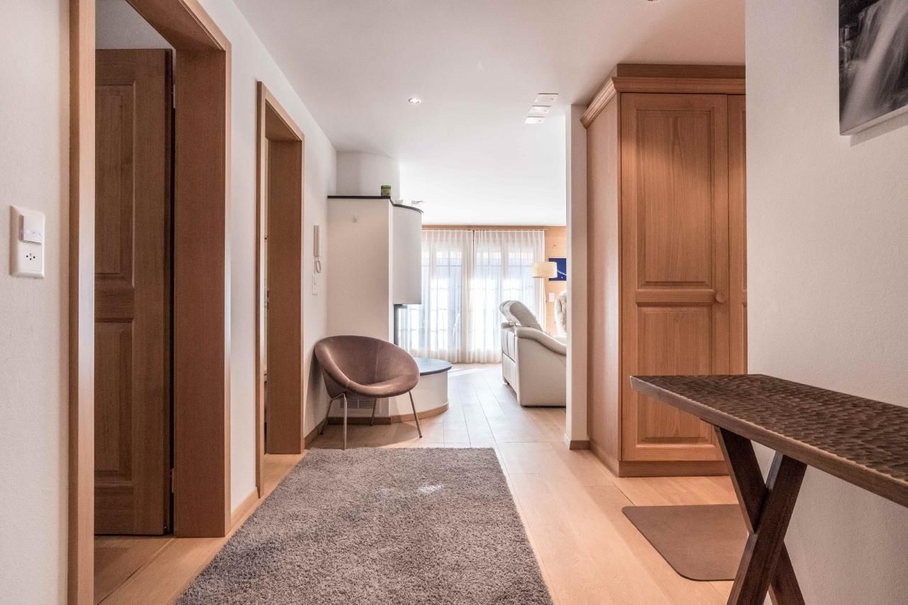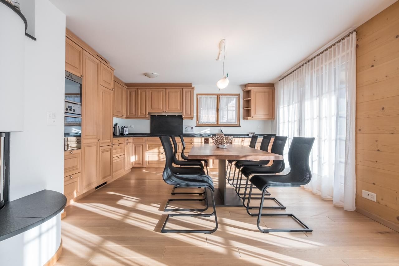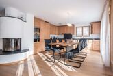 Die luxuriöse 4.5-Zimmerwohnung im Obergeschoss verfügt über 3 Schlafzimmer mit Doppelbett, 2 Badezimmer mit Bad/WC sowie 1 Badezimmer mit Dusche/WC. Die Wohnung hat eine moderne Küche und einen hellen Wohn- und Essbereich mit Cheminée. Der grosse Balkon bietet eine schöne Aussicht auf das Bergpanorama.