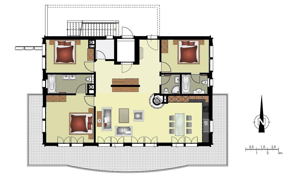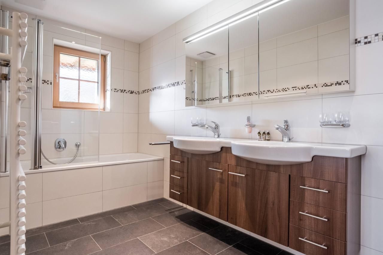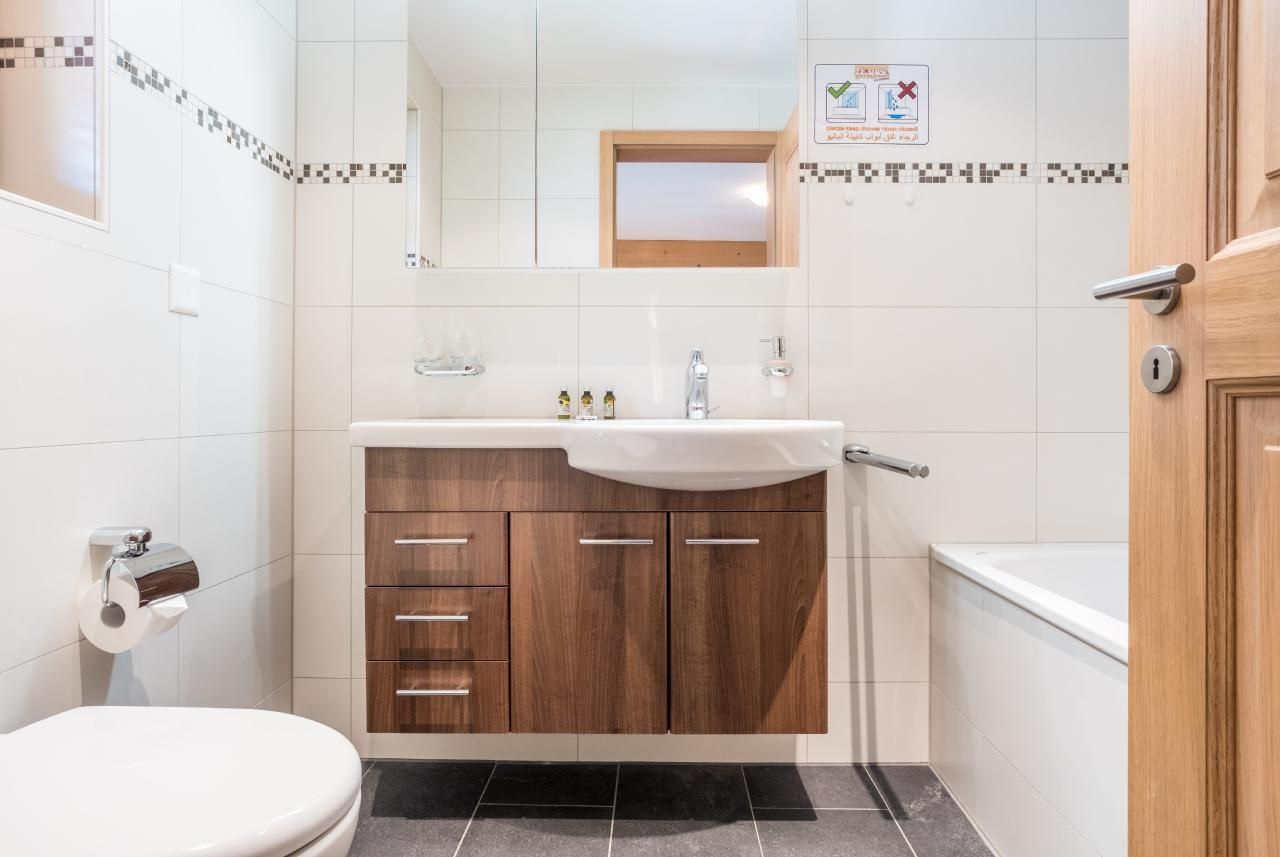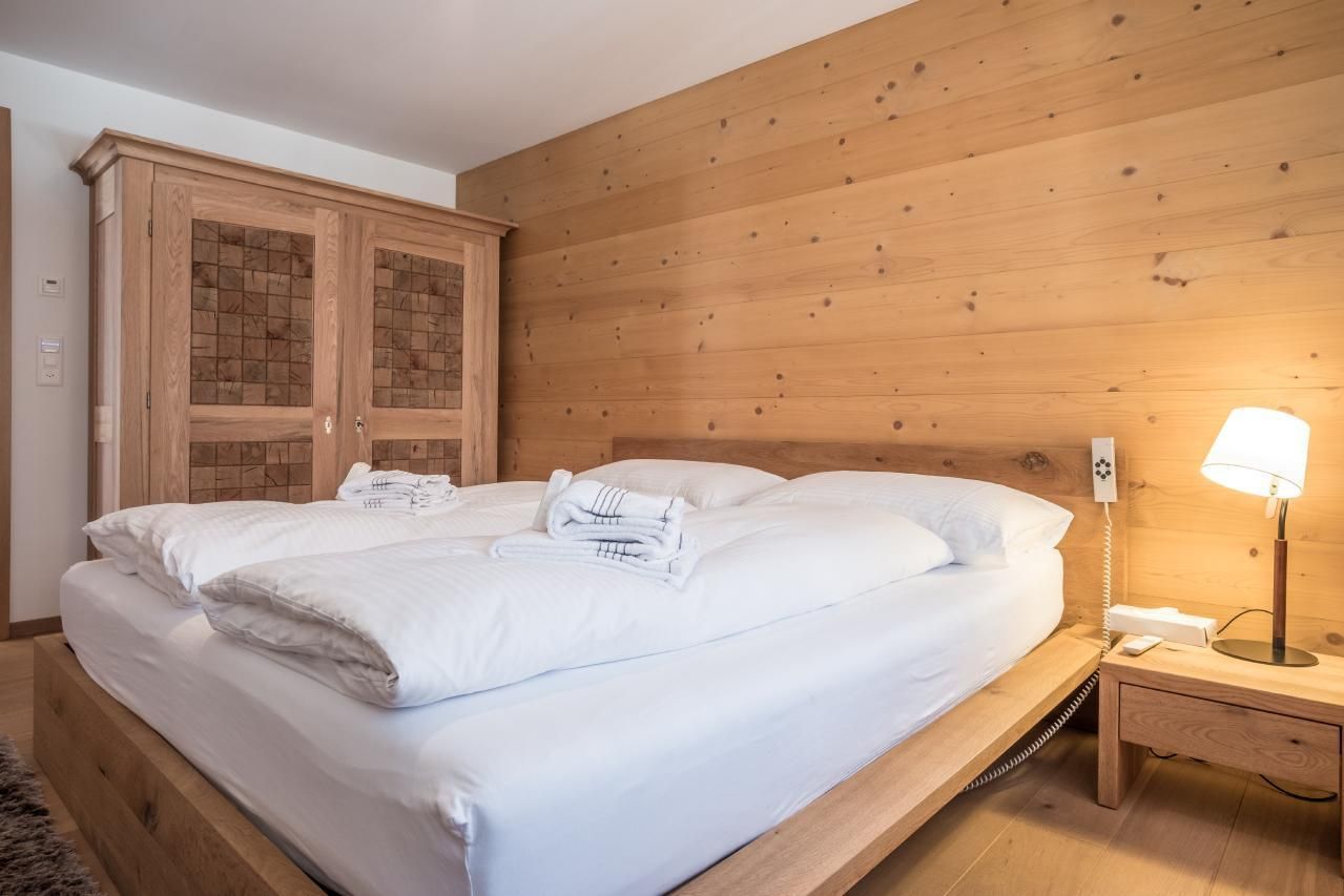 Die luxuriöse 4.5-Zimmerwohnung im Obergeschoss verfügt über 3 Schlafzimmer mit Doppelbett, 2 Badezimmer mit Bad/WC sowie 1 Badezimmer mit Dusche/WC. Die Wohnung hat eine moderne Küche und einen hellen Wohn- und Essbereich mit Cheminée. Der grosse Balkon bietet eine schöne Aussicht auf das Bergpanorama.