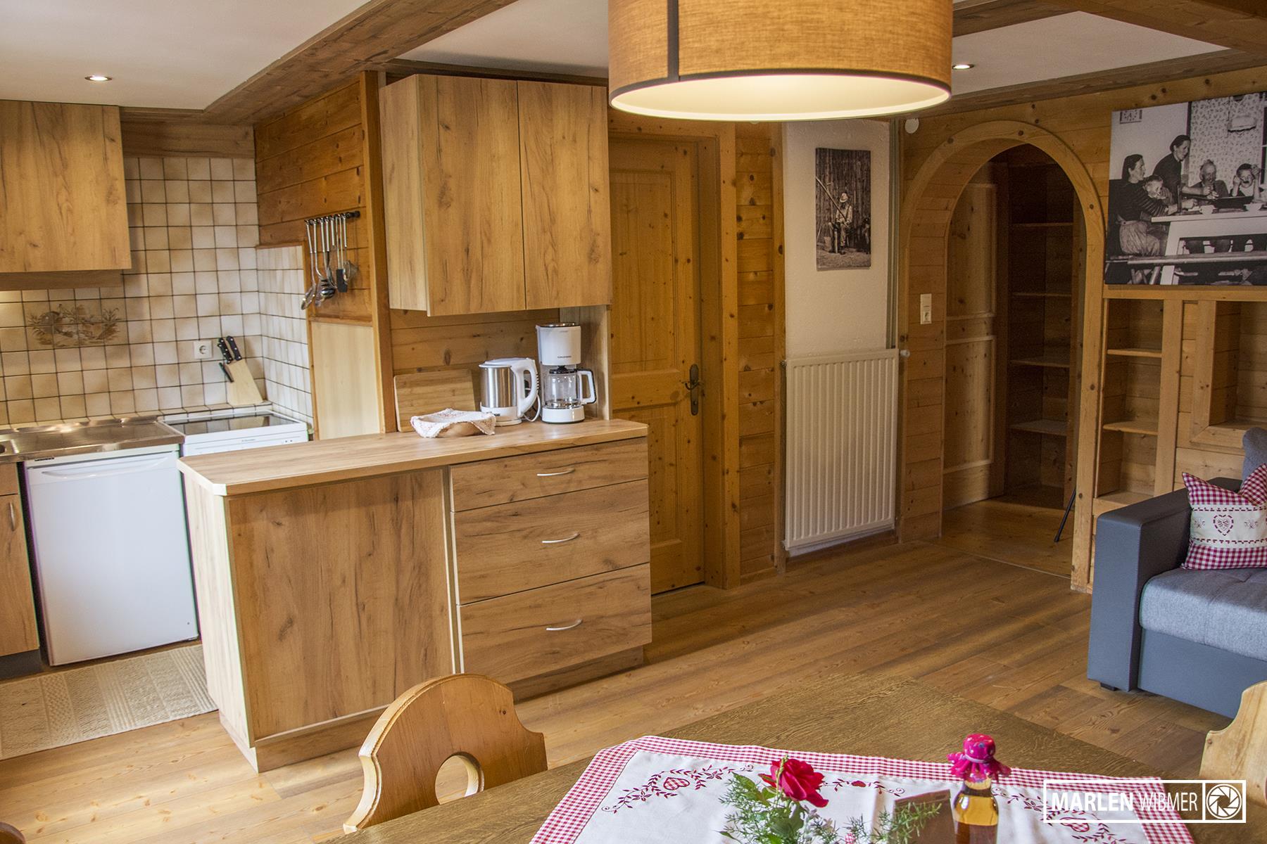 Fewo Matrei ist ausgestattet mit Wohnküche (neuem Küchenblock) u. Südbalkon, neu renovierter Dusche/WC, Doppelbettzimmer mit dahinterliegendem Dreibettzimmer, im rustikalen Stil mit viel Holz, Garderobe und Abstellraum. Koch-,u. Tafelgeschirr, sowie Handtücher, Föhn und Bettwäsche sind ausreichend vorhanden.