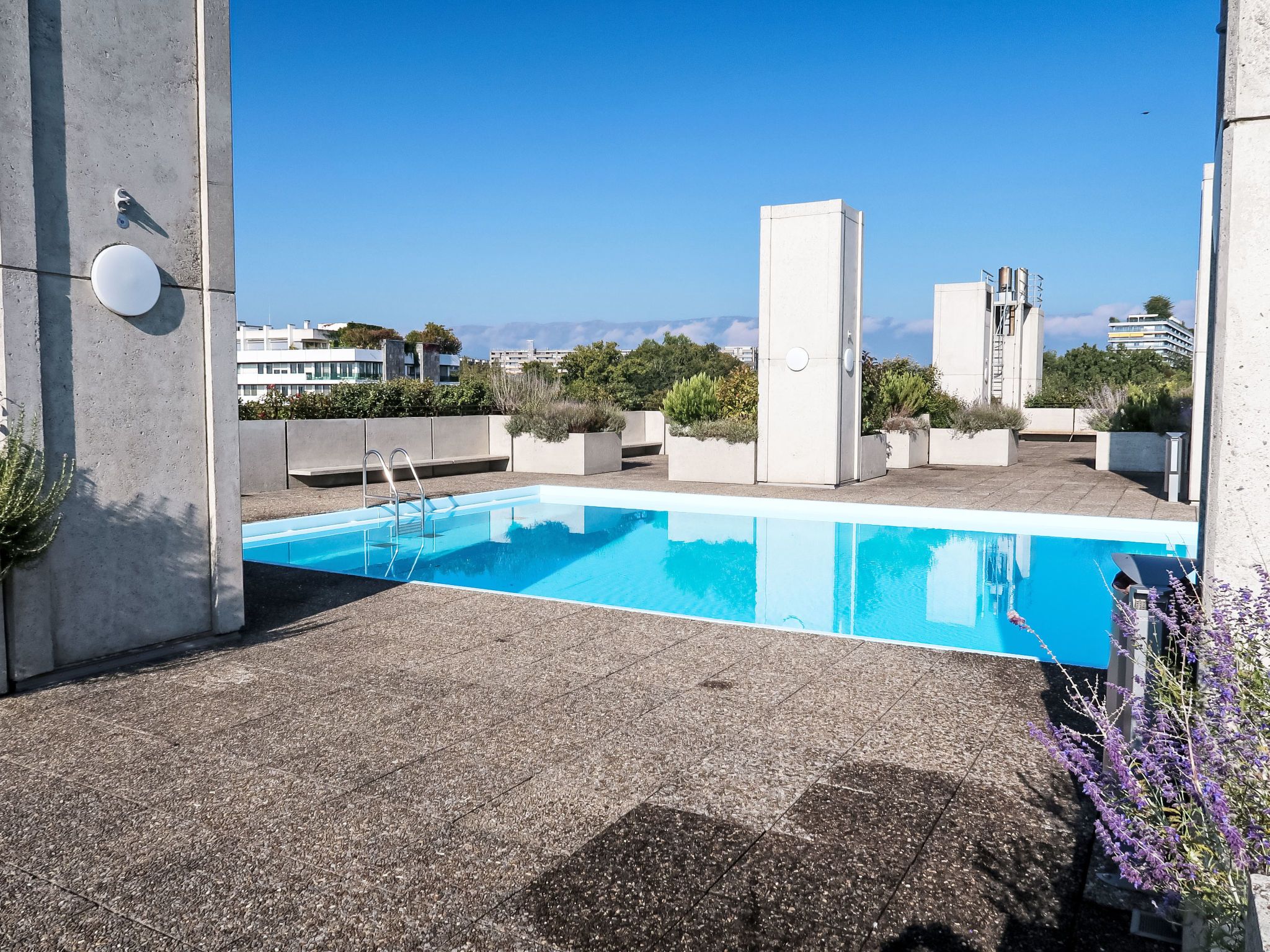 Residenz Ciomal, auf 9 Stockwerken. Im Ort, 3 km vom Zentrum von Genève, zentrale, belebte, sonnige Lage, in einer Sackgasse. Zur Mitbenutzung: Schwimmbad eckig (saisonale Verfügbarkeit: 15.Mai. - 30.Sep. Öffnungszeiten Schwimmbad: 07:00-21:00). Dusche/WC im Poolbereich. Im Hause: Fahrstuhl, Zentralheizung. Gemeinschaftsgarage. Supermarkt 450 m, Restaurant 350 m, Bäckerei 650 m, Bushaltestelle Intercontinental 300 m, Bahnstation Genève-Sécheron 1.3 km, Park Parc de Trembley 800 m, 1.8 km. Nahe gelegene Sehenswürdigkeiten: Palais des Nations 1 km, Jet d'Eau 4 km, Aeroport Geneve 4 km, Palexpo 4 km. Bitte beachten: Fahrzeug empfohlen.