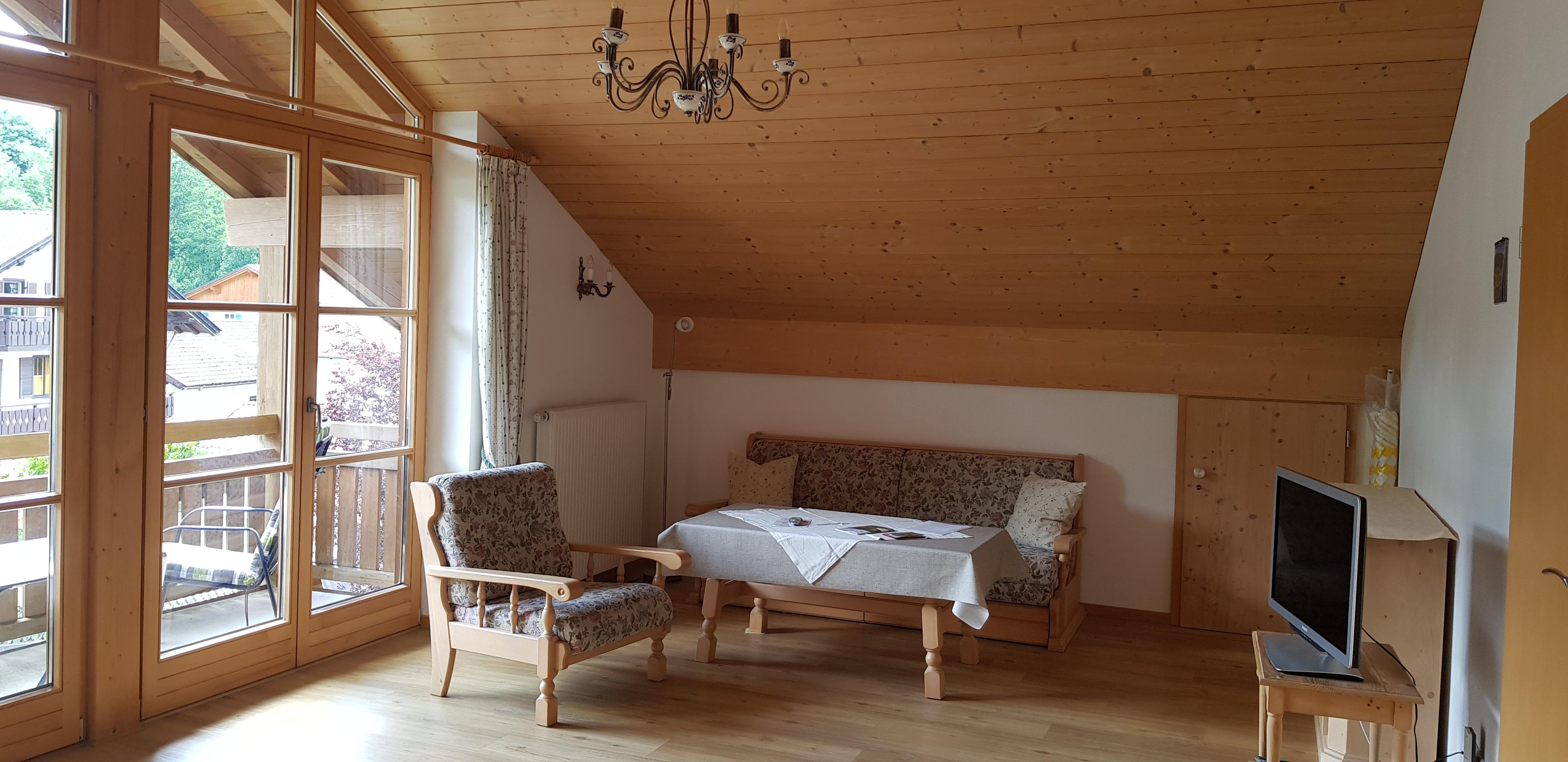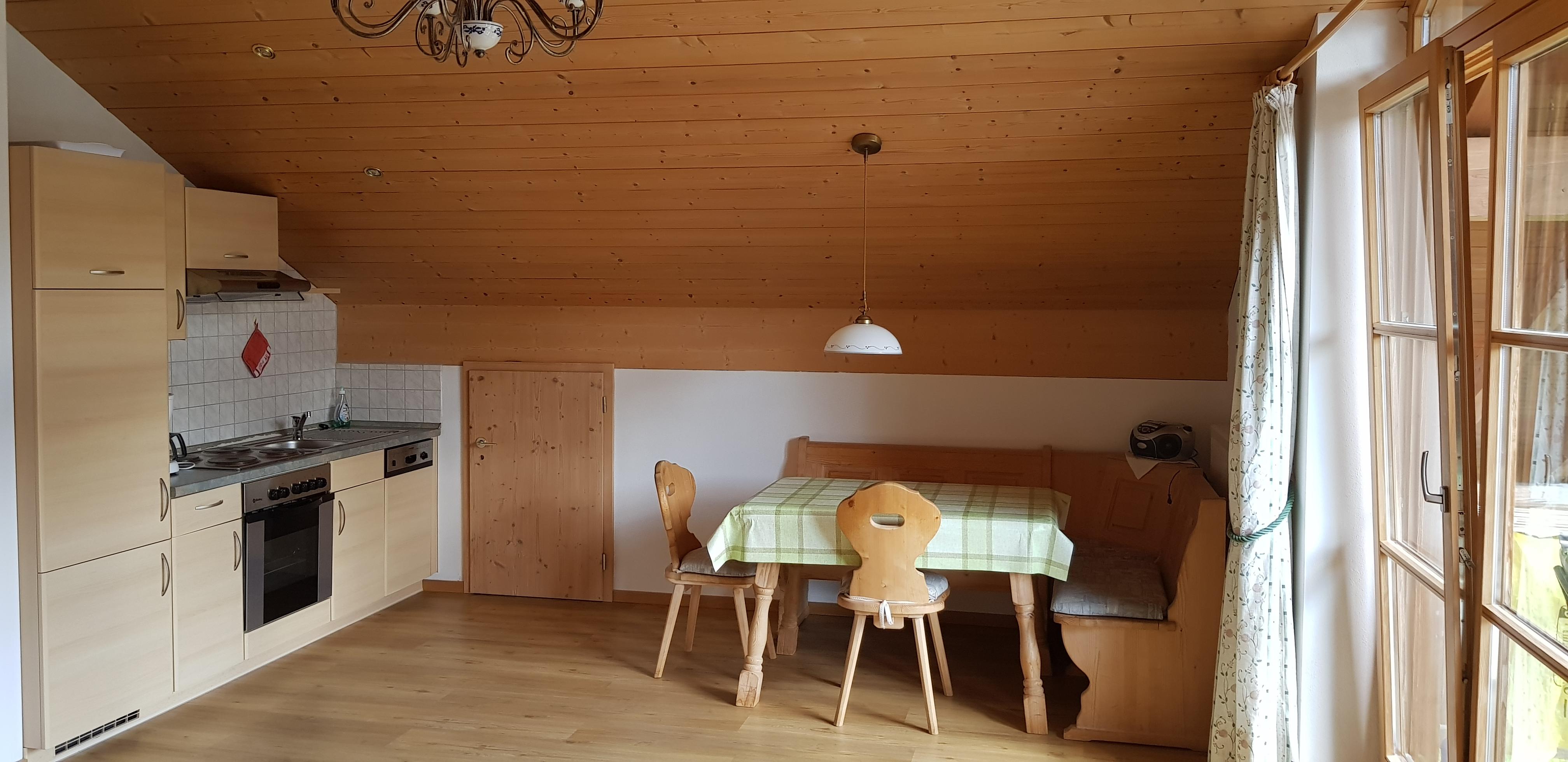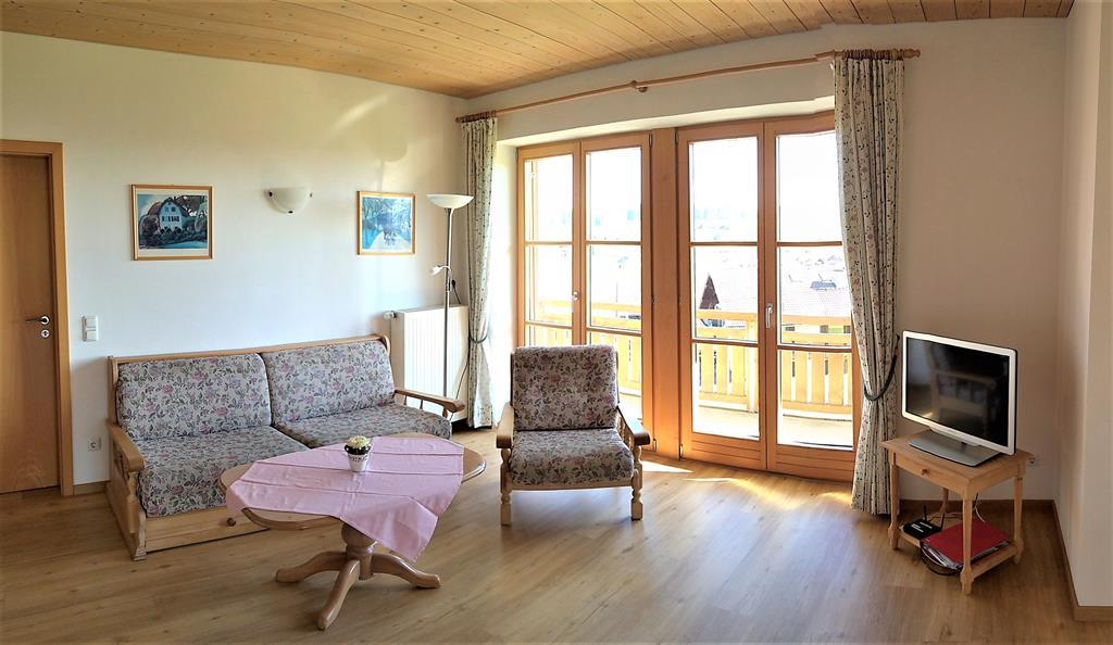 Stilvoll eingerichtete Komfort-Ferienwohnungen für 2-4 Personen. Wohnzimmer mit gemütlicher Sitzecke, Flachbild-Fernseher, komplett eingerichtete Küche mit Herd und Spülmaschine,Eckbank, Schlafzimmer, Dusche/WC, Radio, möblierter Balkon oder-Süd-Terrasse mit wunderbarer Aussicht auf die Berge und die freie Wiese vor dem Haus. Kostenloses WLAN, Große Liegewiese, Parkplätze am Haus