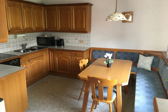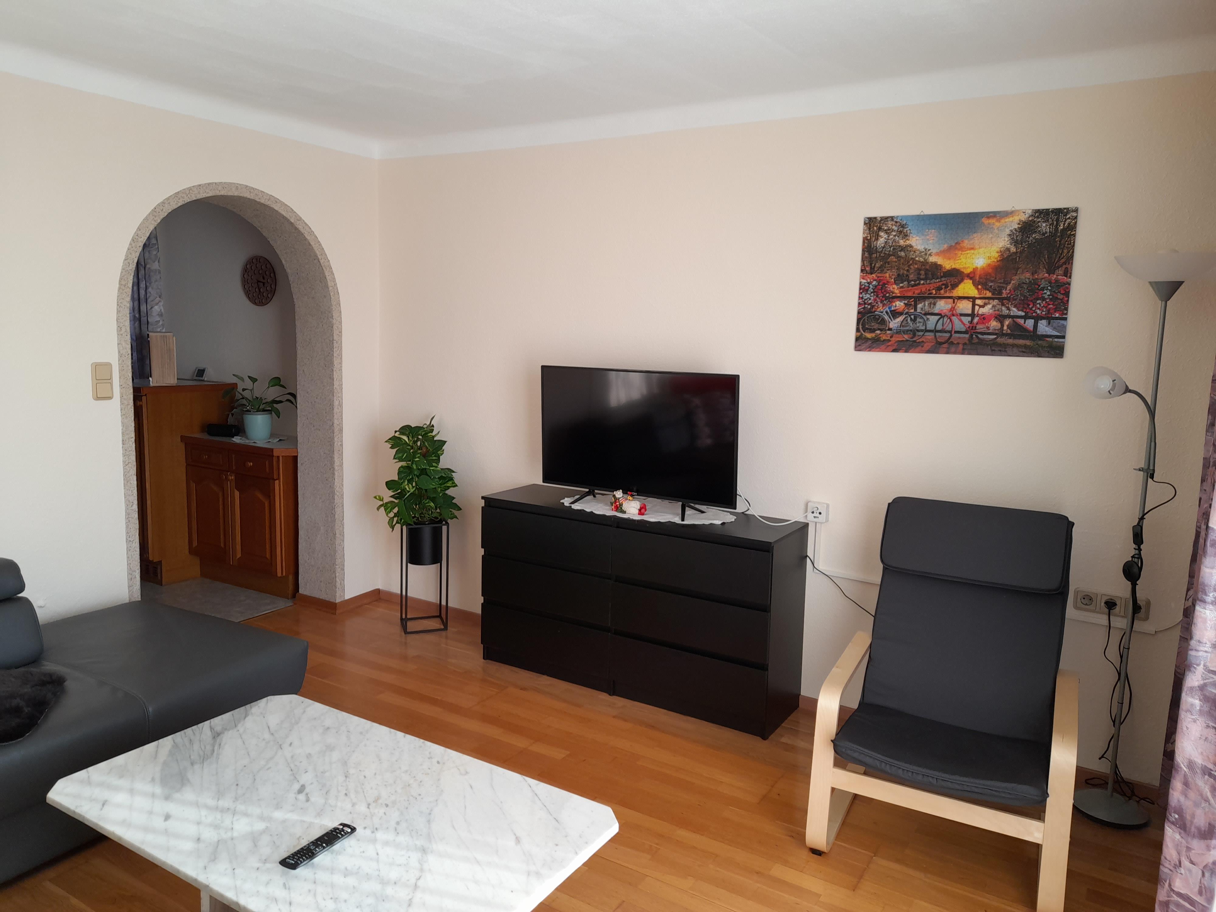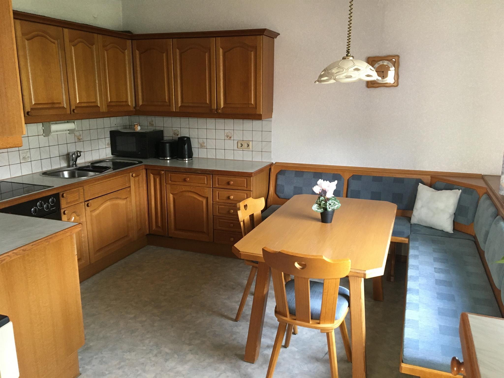 eine voll ausgestattete Küche mit angrenzendem Wohnzimmer, Fernseher , Sat, Wlan,