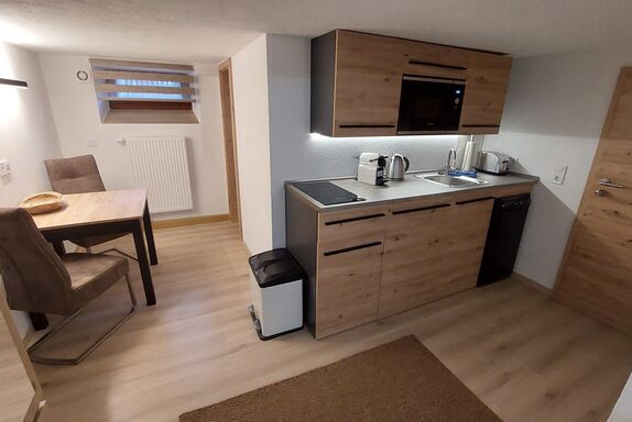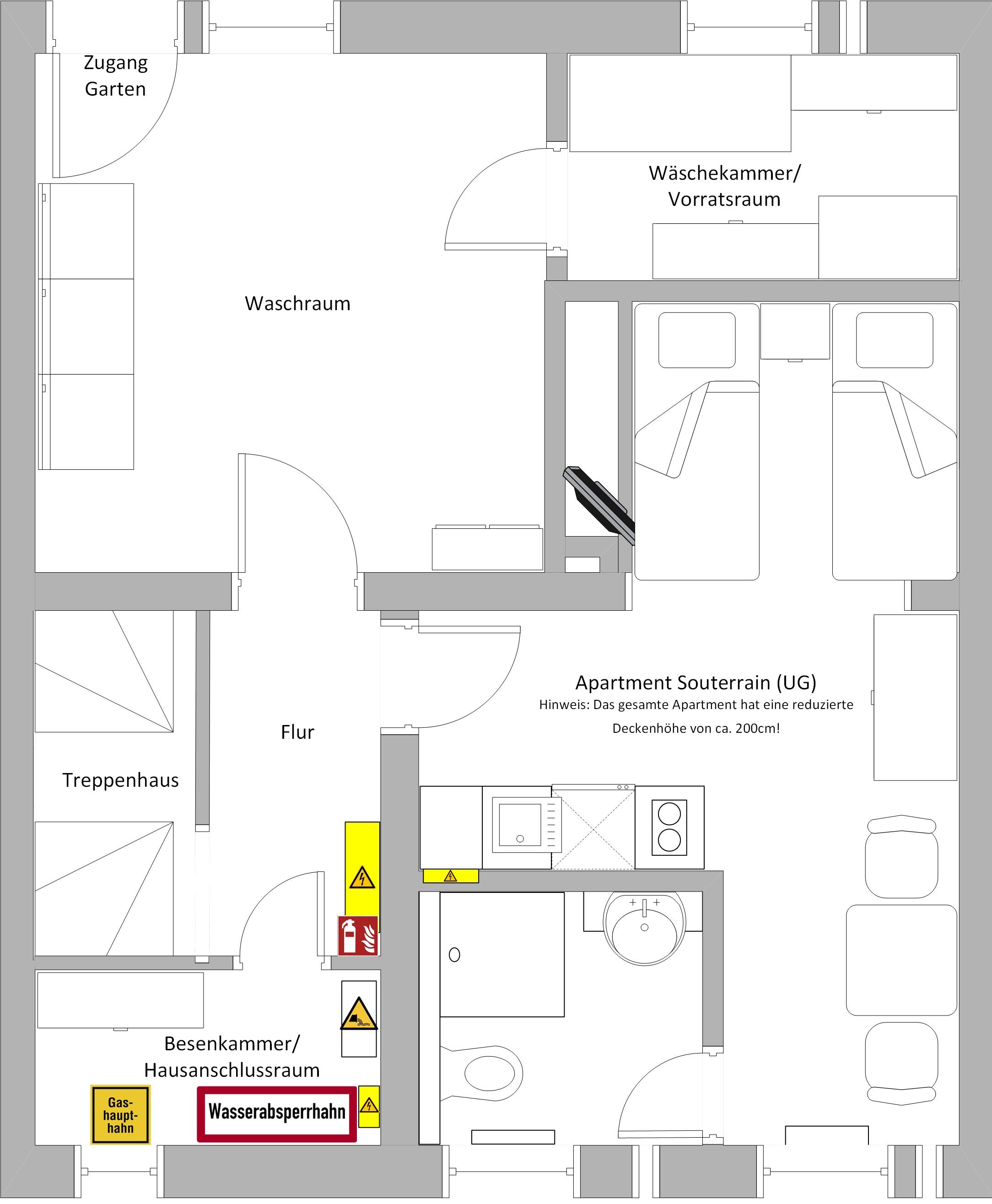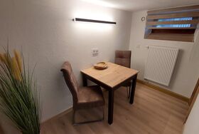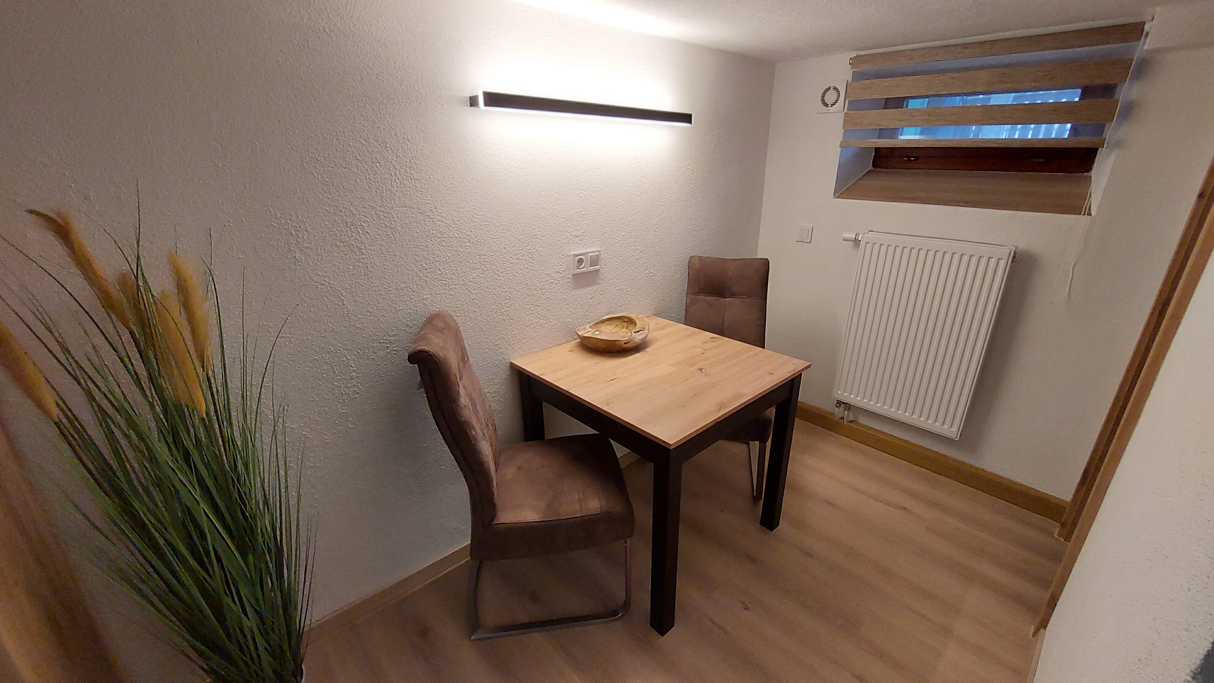 Klein aber Fein ist die Devise bei unserem Souterrain Apartment. Unser nicht weniger liebevoll gestaltetes Apartment im Untergeschoss bietet für kleines Budget alles an Komfort, was man als Monteur, Fachschüler oder aktiv Urlauber der überwiegend unterwegs ist und Abends eine Kochgelegenheit zur Selbstverpflegung, entspanntes Duschen und ein bequemes Bett zum Energietanken für den nächsten Tag benötigt.
