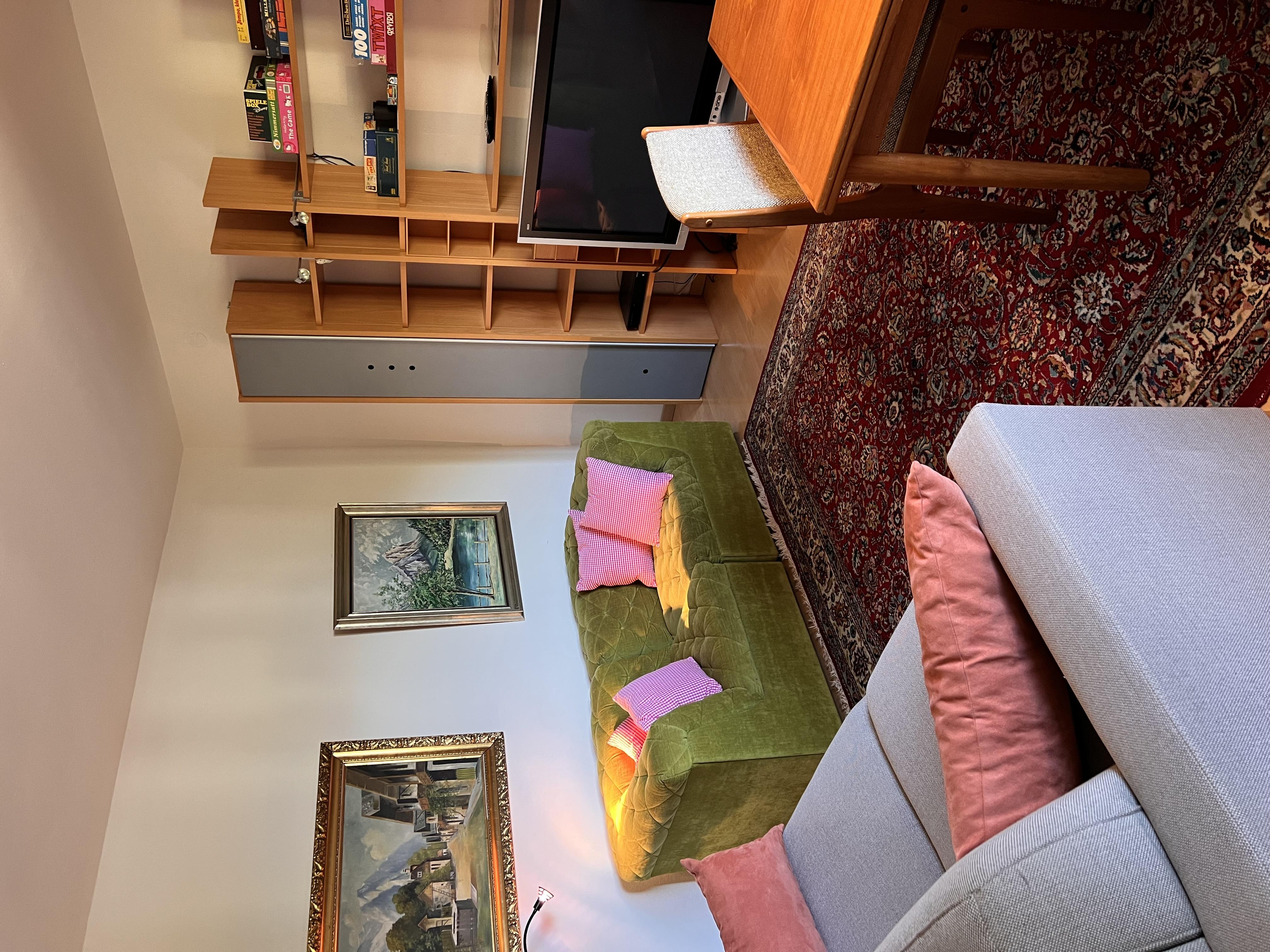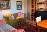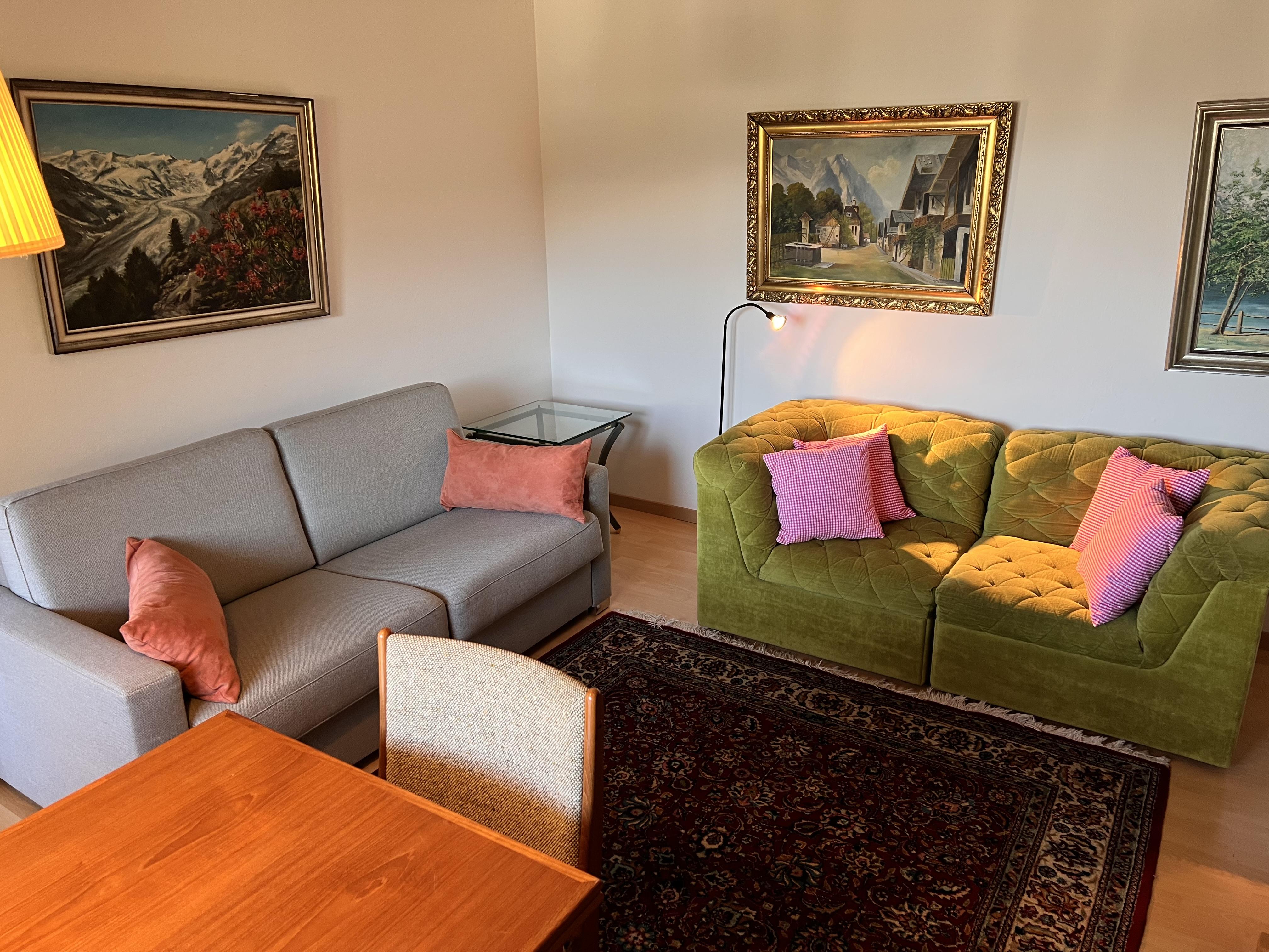 Fünfter Schlafplatz im Wohnzimmer: ausziehbare Schlafcouch für eine Person.