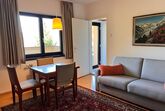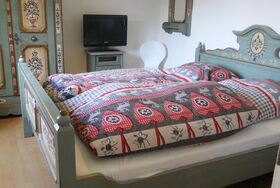 Das Appartement ENZIAN verfügt als einzigstes Appartement über einen direkten Zugang zu dem großen Garten. Da dieser komplett eingezäunt ist könnt ihr euren Hund hier unbeschwert herumtollen lassen. Zusätzlich gibt es eine große überdachte Terrasse. Sowohl das Wohnzimmer als auch beide Schlafzimmer verfügen über einen TV. In der großen Küche gibt es genug Platz um gemeinsam die Speisen zuzubereiten. Bad und Toilette sind voneinander getrennt. Von dem Appartement schaut ihr auf die umliegenden Berge und das Tal.