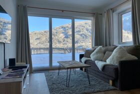 Traumhafte Aussicht von der Ferienwohnung mit Terrasse auf die umliegende Bergwelt sowie den Ort Flachau. Zentrale Lage, an der Hauptpiste (8er-Jet Gondelbahn), Skischule, Skiverleih, Restaurants, Aprés Ski Lokale sowie der Ort von Flachau sind einfach zu Fuß erreichbar - ihr Auto kann während des Aufenthaltes auch einmal Urlaub am kostenlosen Parkplatz an der Unterkunft machen. Geschätzt wird die Flexibililtät im Urlaub, man ist an keine Frühstücks- oder Skibuszeiten gebunden.