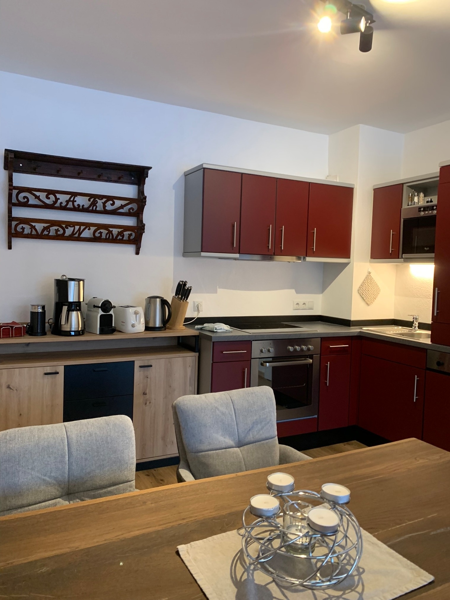 Komplett ausgestattete Einbauküche mit E-Herd, Backrohr, Kühlschrank mit Gefrierfach, Geschirrspüler,