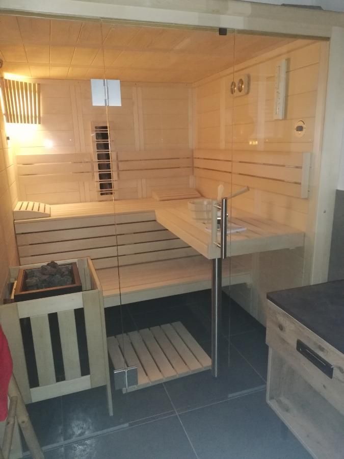 Diese luxuriöse Wohnung mit Sauna und Whirlpool liegt im Obergeschoss und ist über einen Treppenaufgang und einen eigenen Eingang erreichbar. Sie bietet Raum und Wellness für vier Personen.