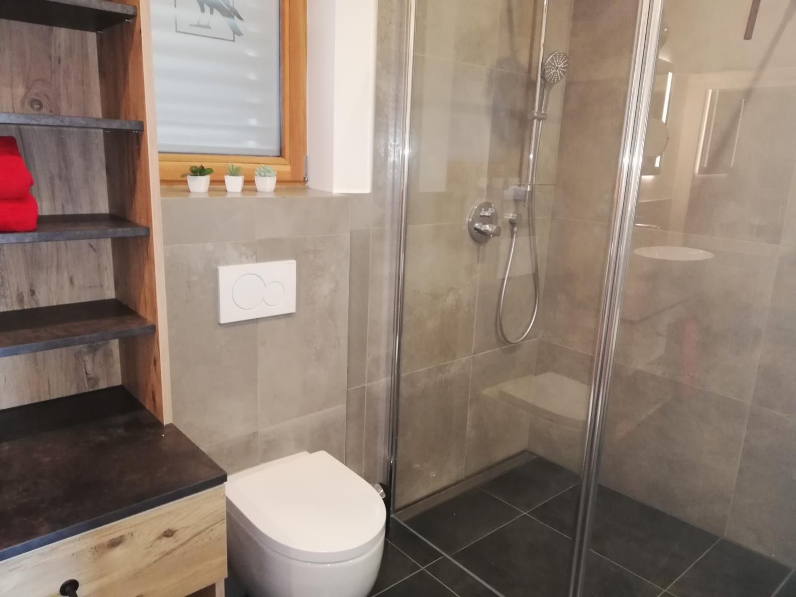 Zusätzlich gibt es noch ein zweites Badezimmer mit Dusche und WC.