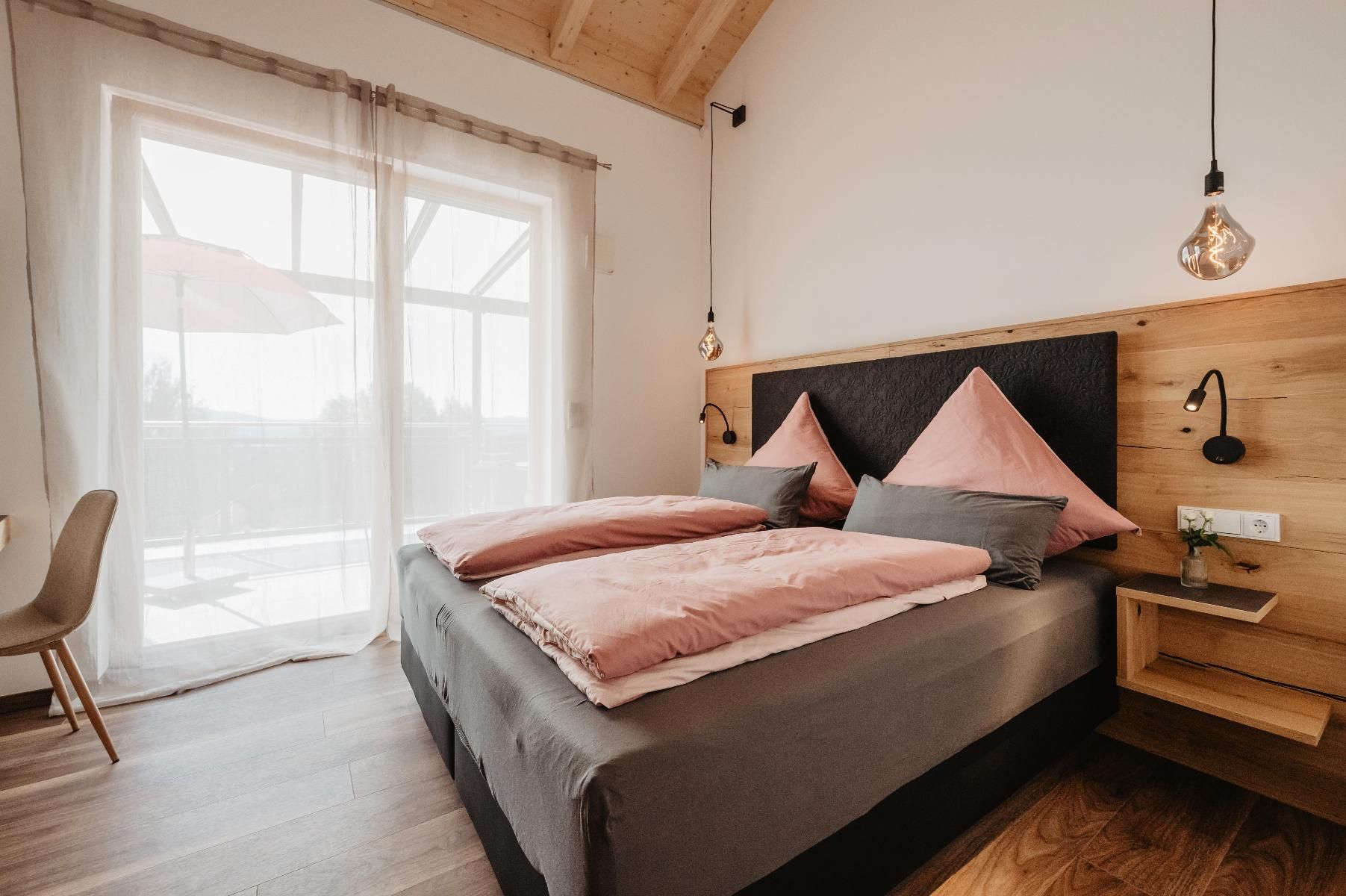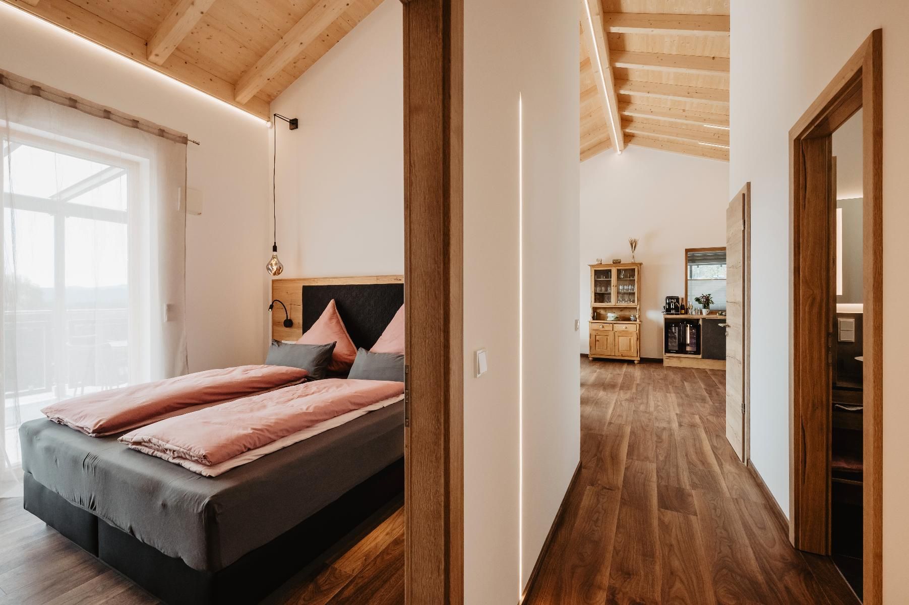 Es erwarten Sie vier neu gebaute moderne und hochwertig eingerichtete Feriensuiten in ruhiger Ortsrandlage mit einer grandiosen Aussicht über Zwiesel und die Berge des mittleren Bayerischen Waldes. Jede Suite wurde vom Deutschen Tourismusverband mit fünf Sternen ausgezeichnet.