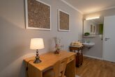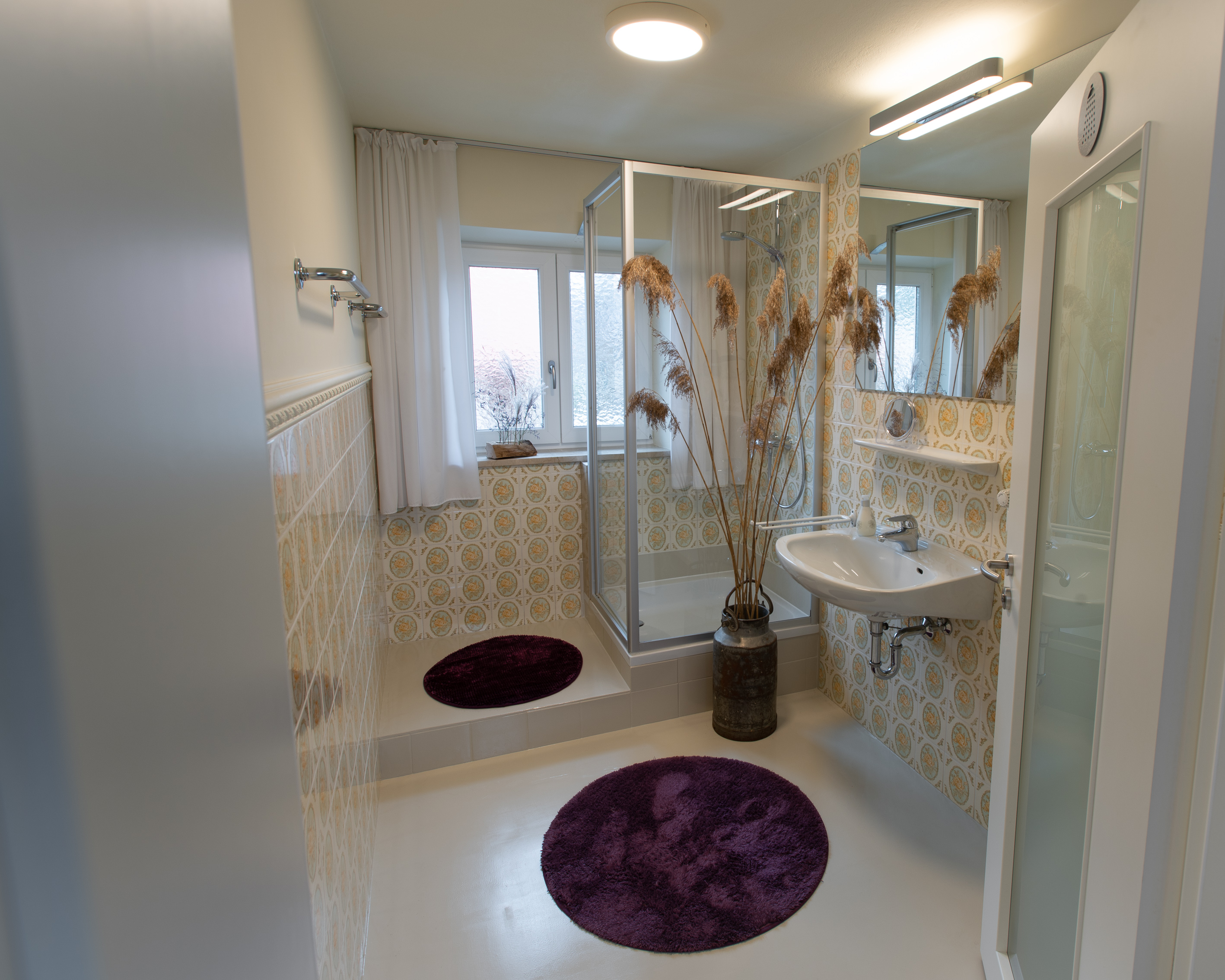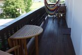 Einzelzimmer mit zusätzlichem Ausziehbett mit Ost-Balkon, ohne Frühstück, freies W-LAN, Waschbecken im Zimmer. Dusche und WC befinden sich auf der Etage und werden nur von den Gästen des Doppelzimmers bei zeitgleicher Belegung mitbenutzt. Bettwäsche, Handtücher, Balkonbestuhlung, auf Anfrage Kinderbett und Hochstuhl.