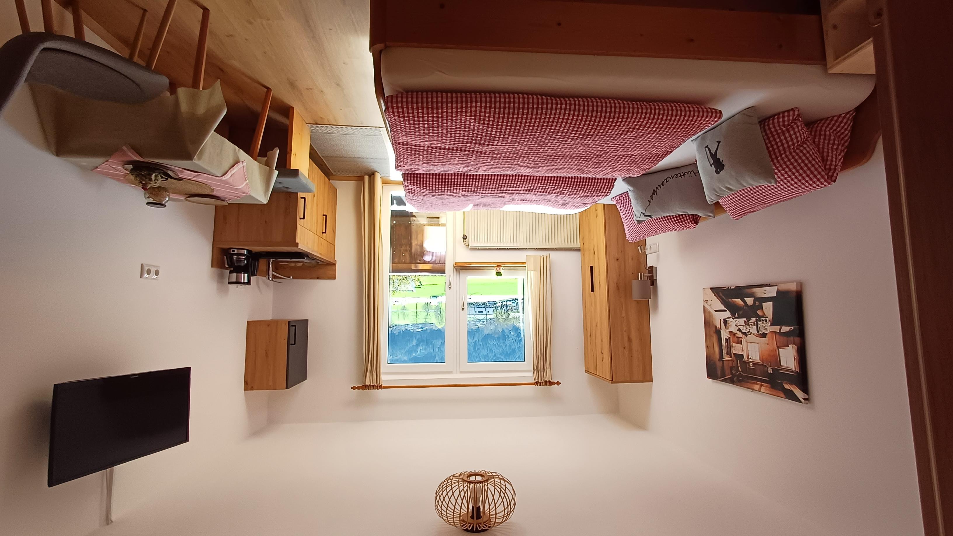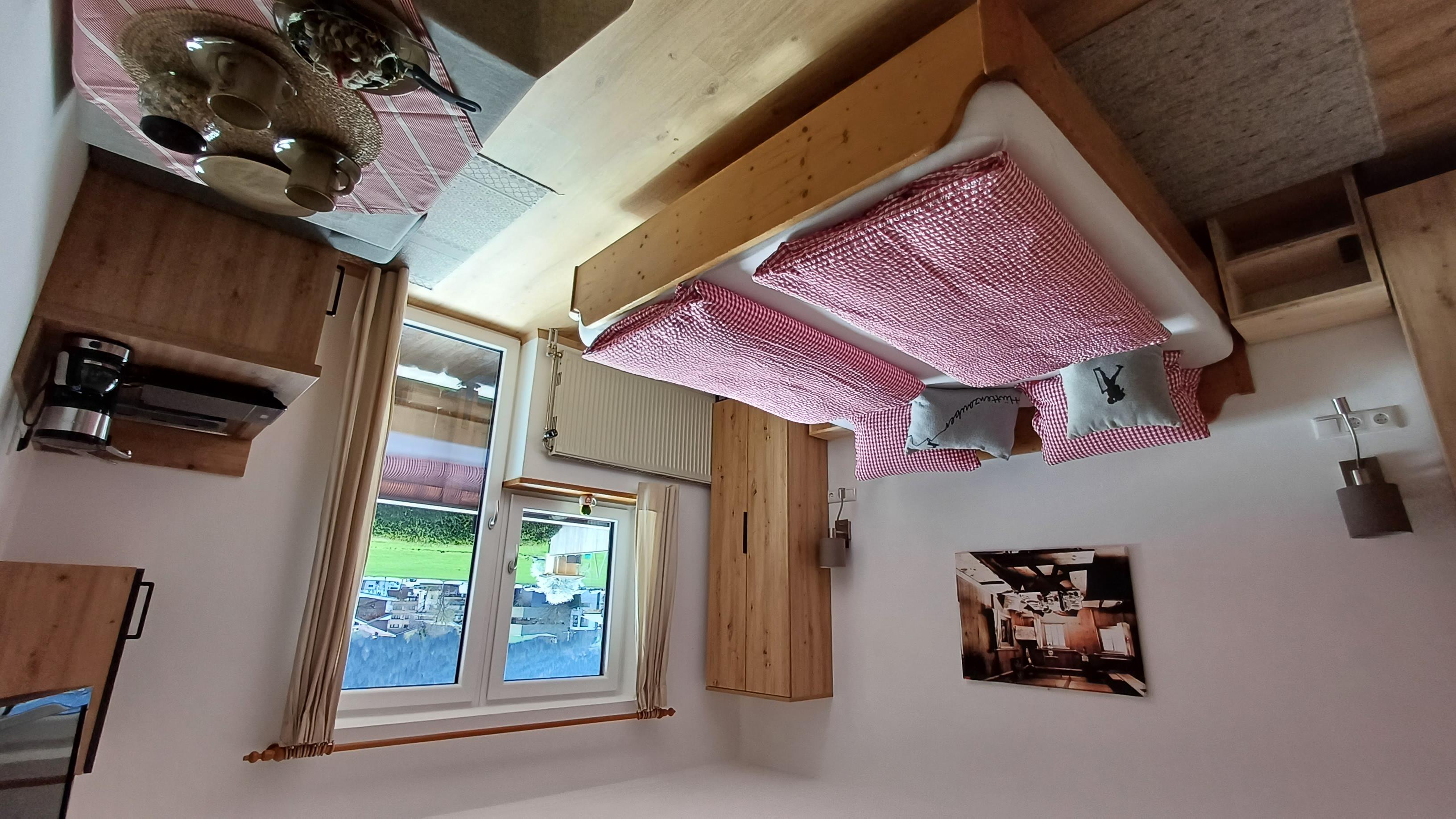 Im ersten Stock befinden sich Zimmerstudio WANDERGLÜCk 20qm , weiters ein Apartment ANDI mit Wohnküche 2 Schlafzimmer bzw 3 Schlafzimmer