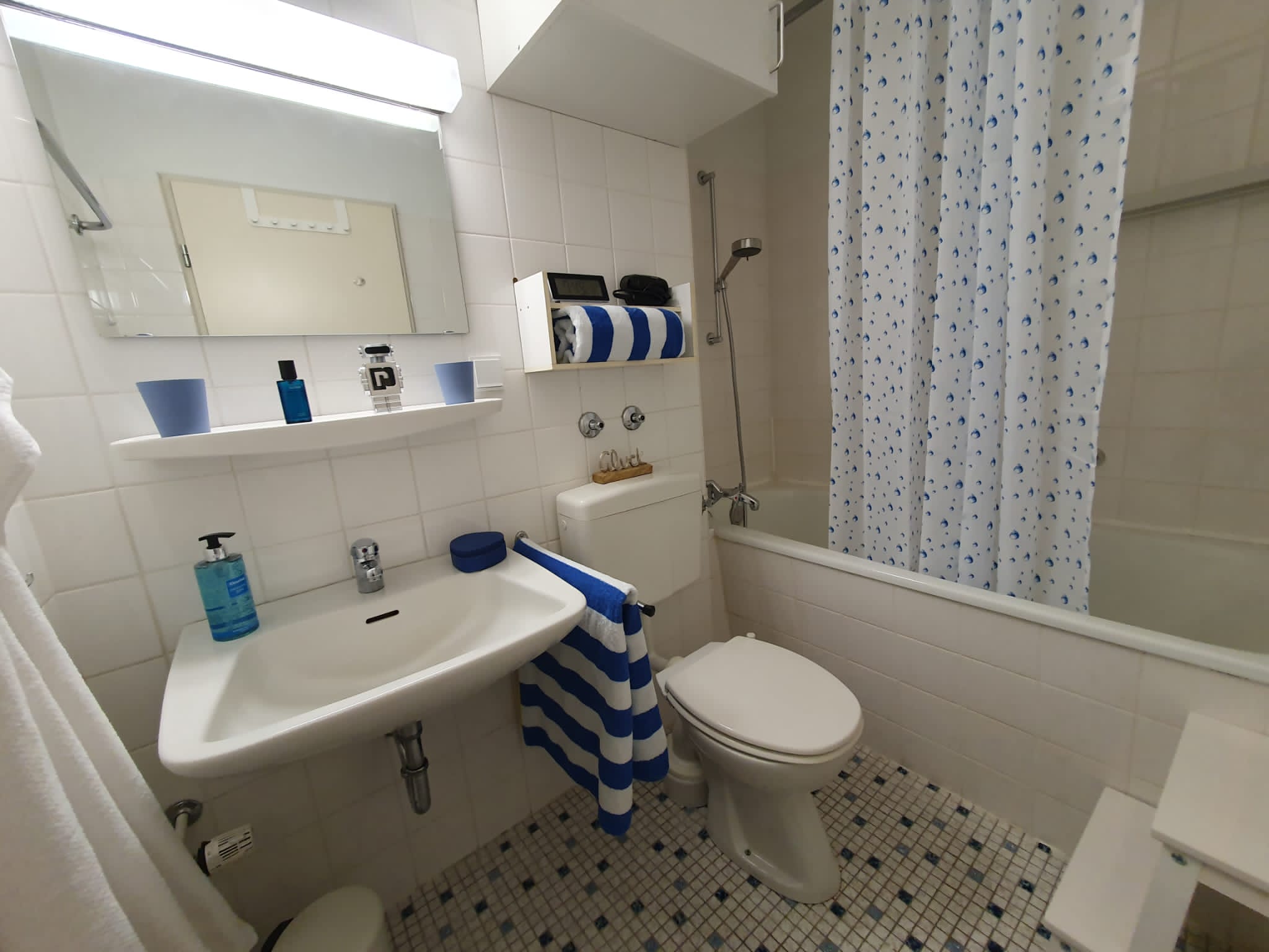 Die gemütliche und komfortable Ferienwohnung Rupertusschwänchen ist ca. 29m² groß. Von der Wohnungstür betritt man einen kleinen Flur, von dem links das Bad abgeht.
