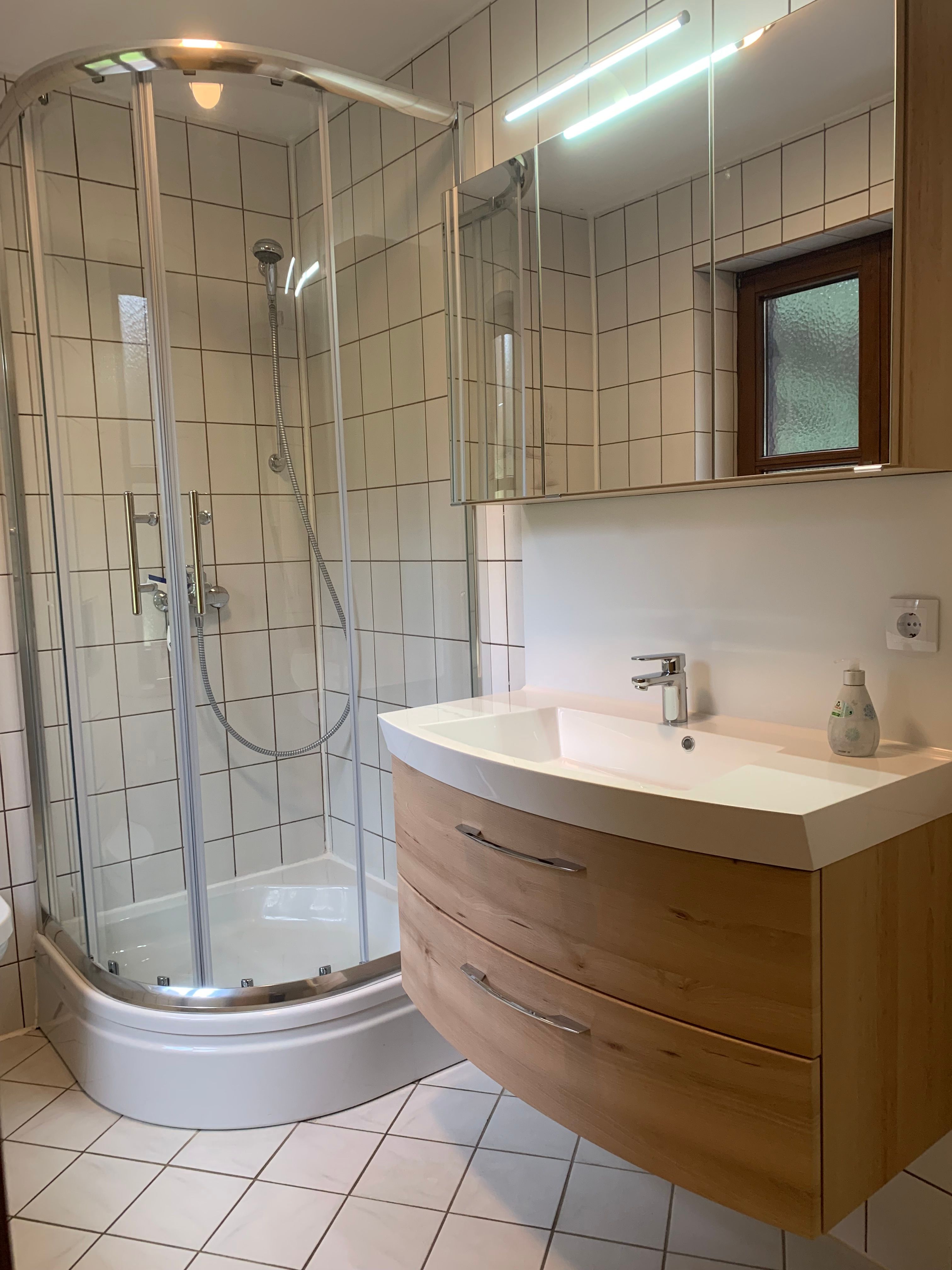 Im Badezimmer steht Ihnen eine Dusche, ein Kosmetikspiegel sowie ein Föhn zur Verfügung.