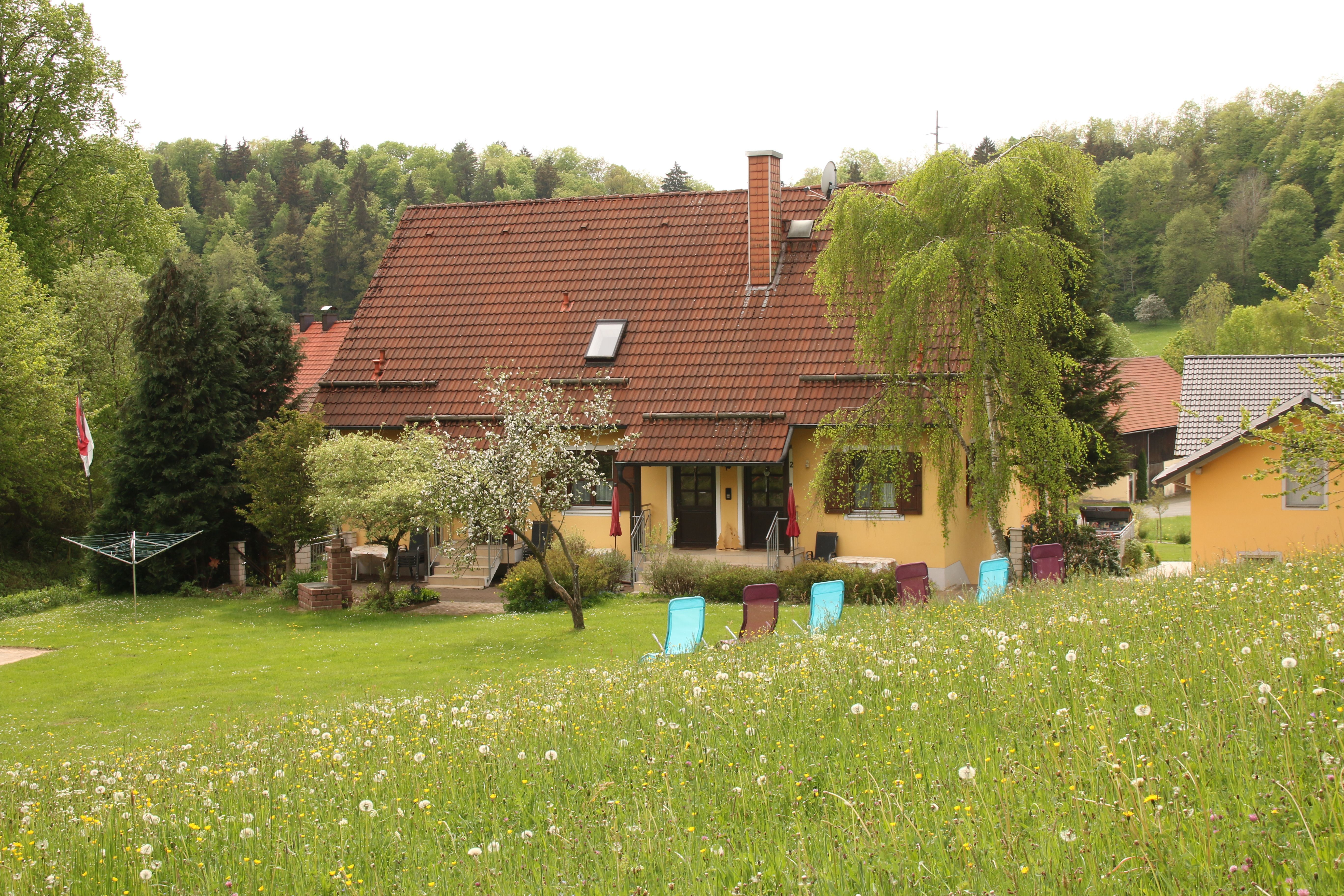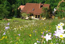 Idyllische Berglandschaft, ruhige Waldrandlage, kein Durchgangsverkehr, Spielplatz, Sandkasten, Schaukel, große 11 m lange Rutsche, Grillplatz und Liegewiese am Haus, Burgen, Höhlen, Thermal-Erlebnisbad Obernsees für die ganze Familie ca. 7 km entfernt.