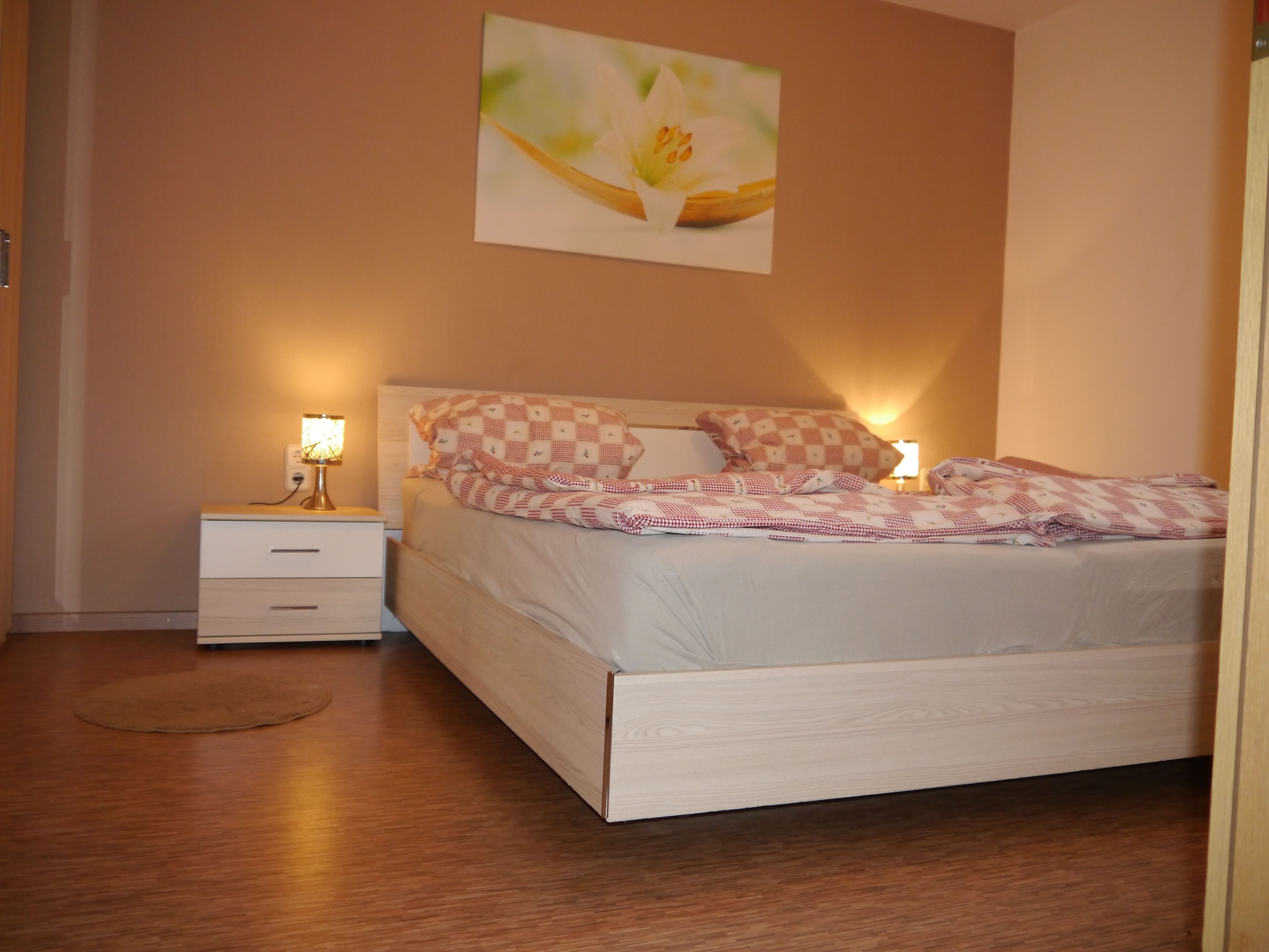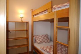Die Ferienwohnung 2 beinhaltet zwei Schlafzimmer darunter ein Etagenbett und ein Doppelbett.