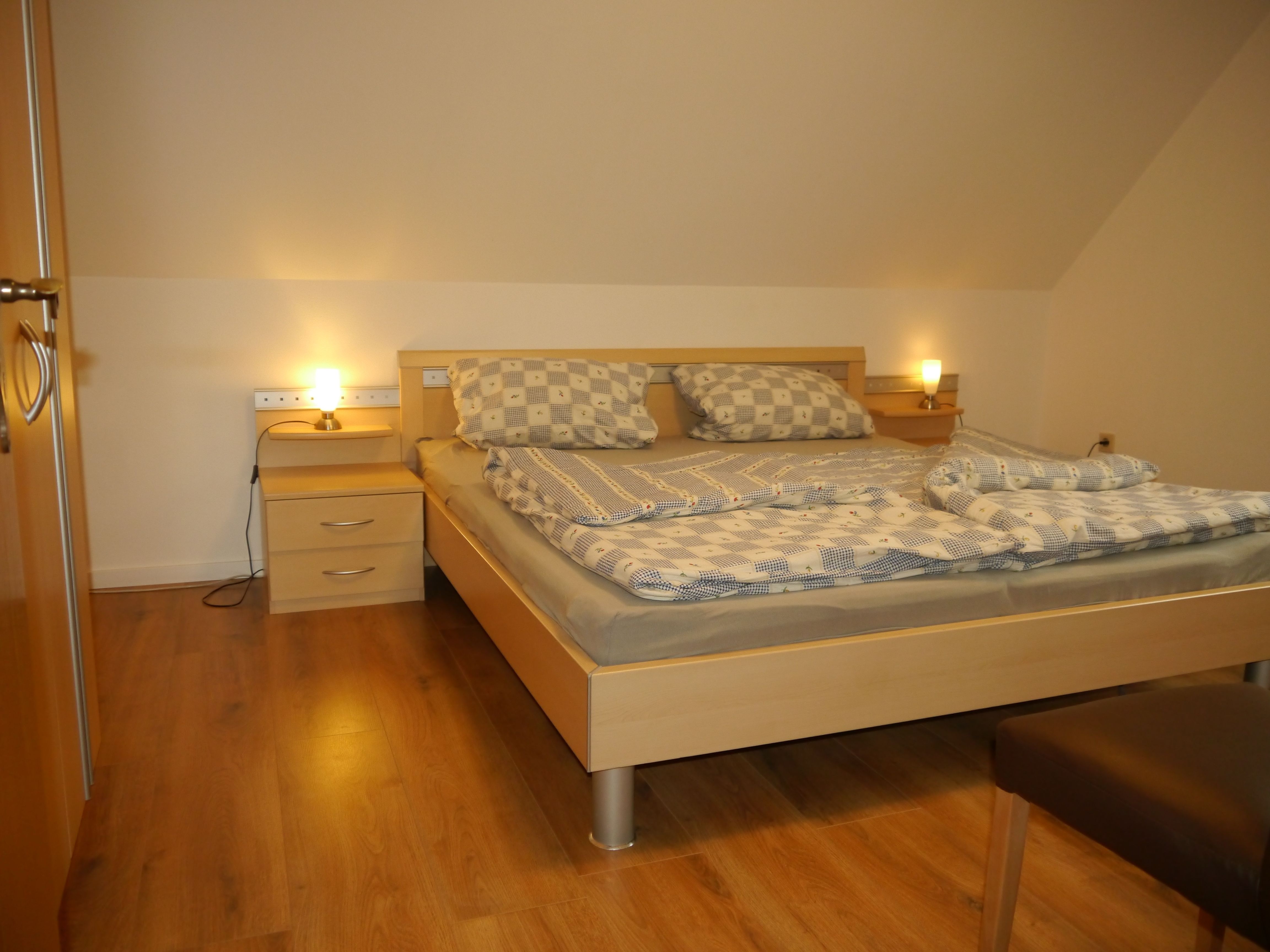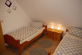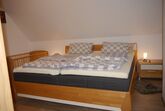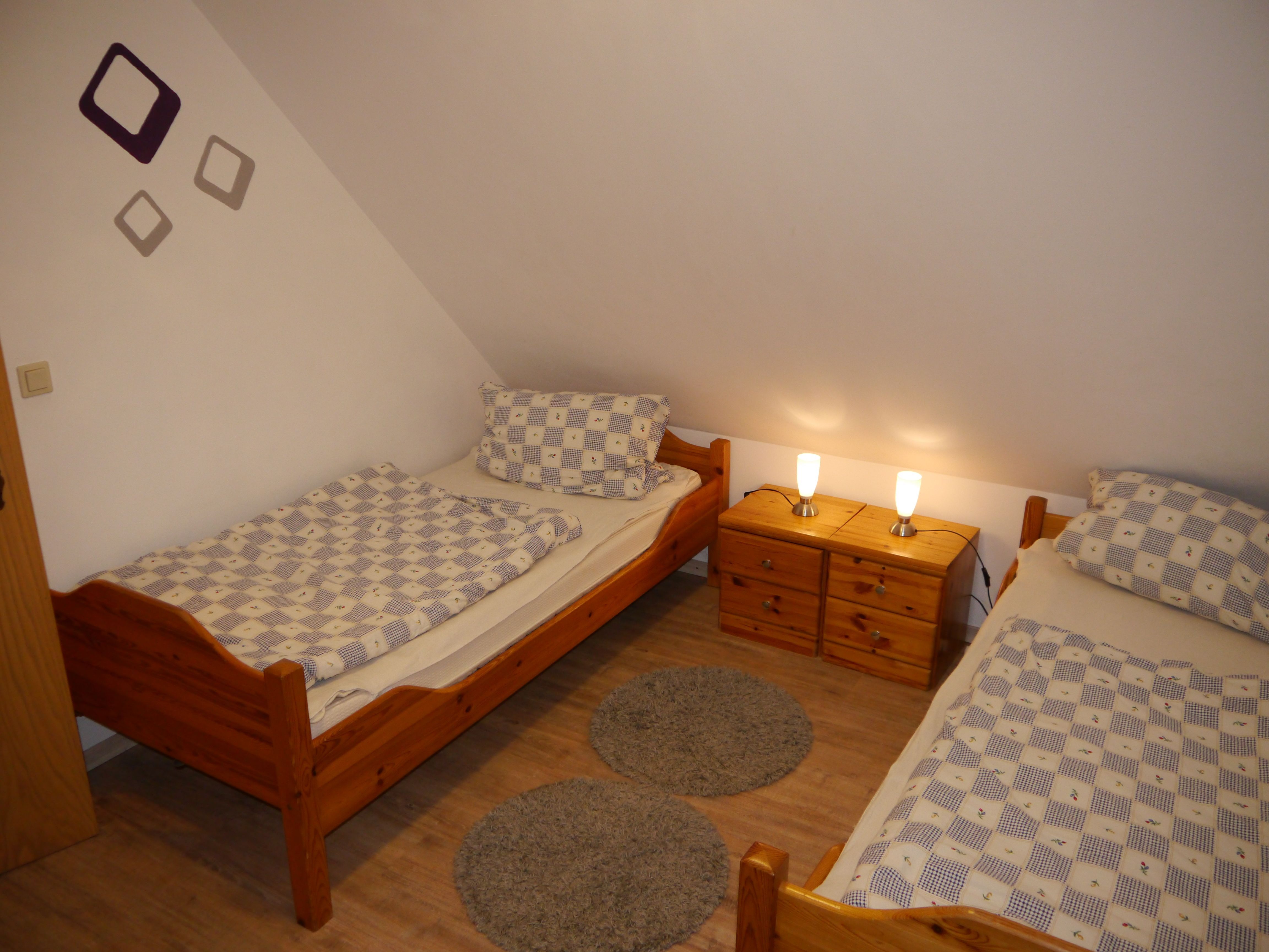 Die Ferienwohnung 3 beinhaltet 3 Schlafzimmer darunter zwei einzel stehende Betten und zwei Doppelbetten sowie ein Babybett.