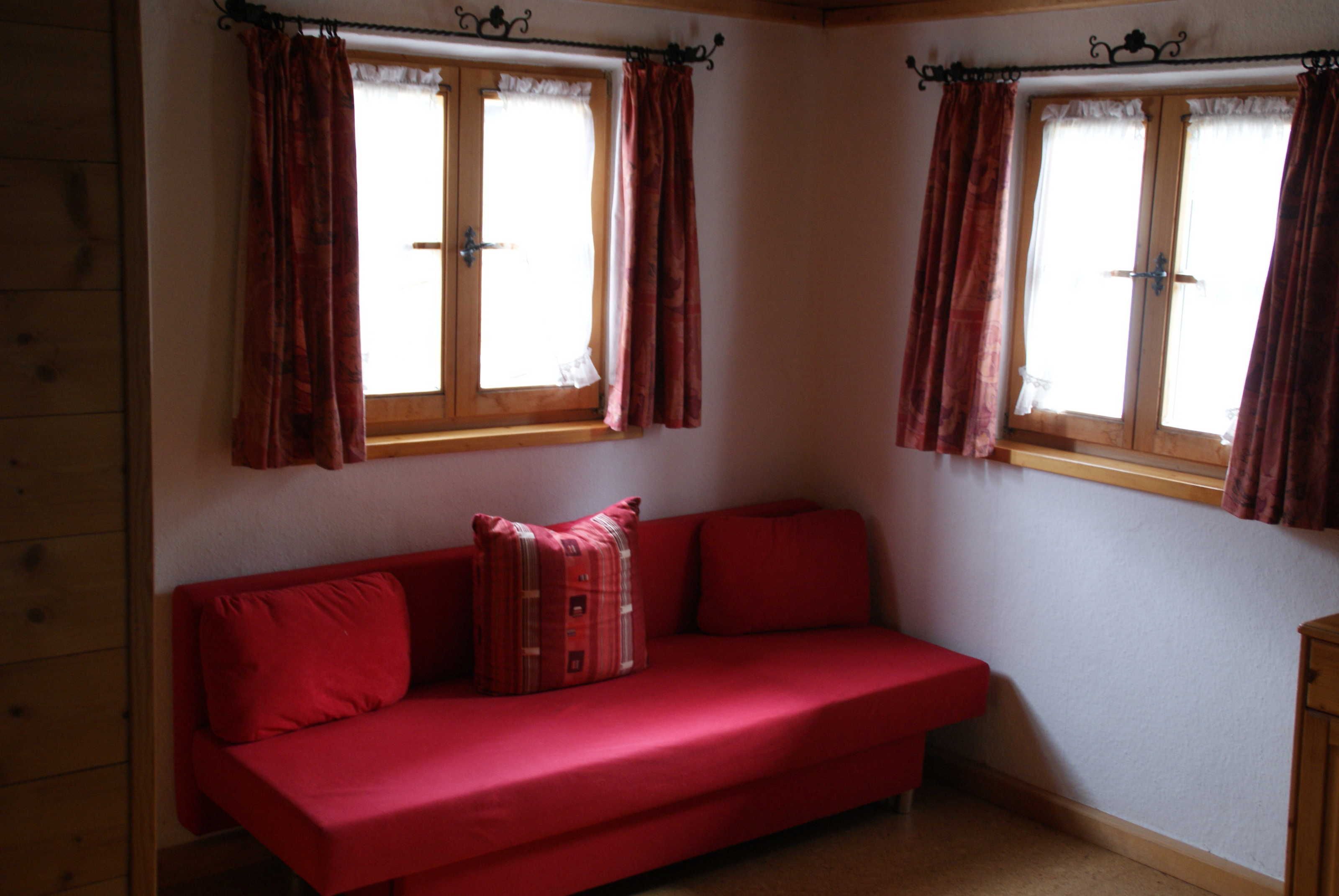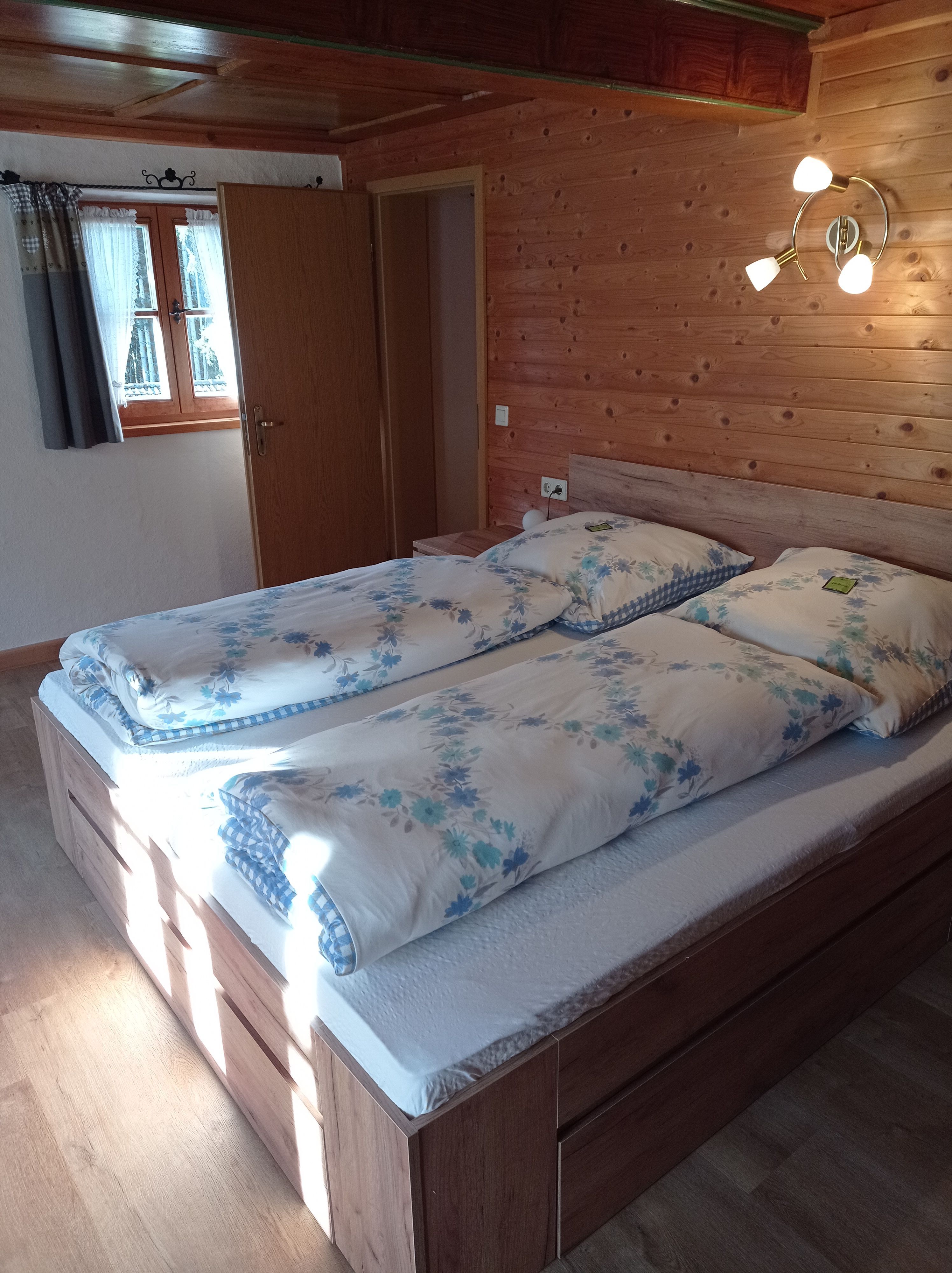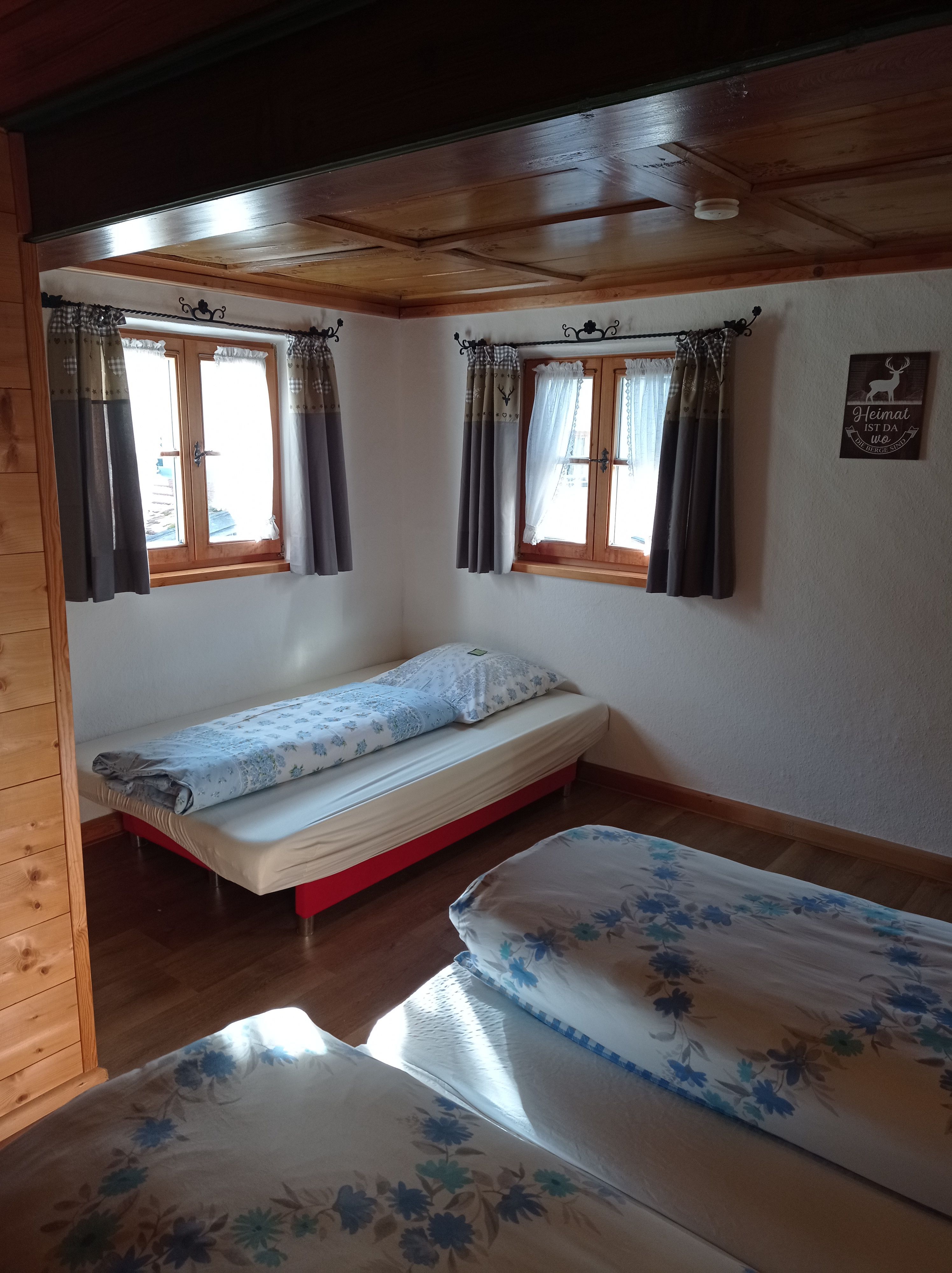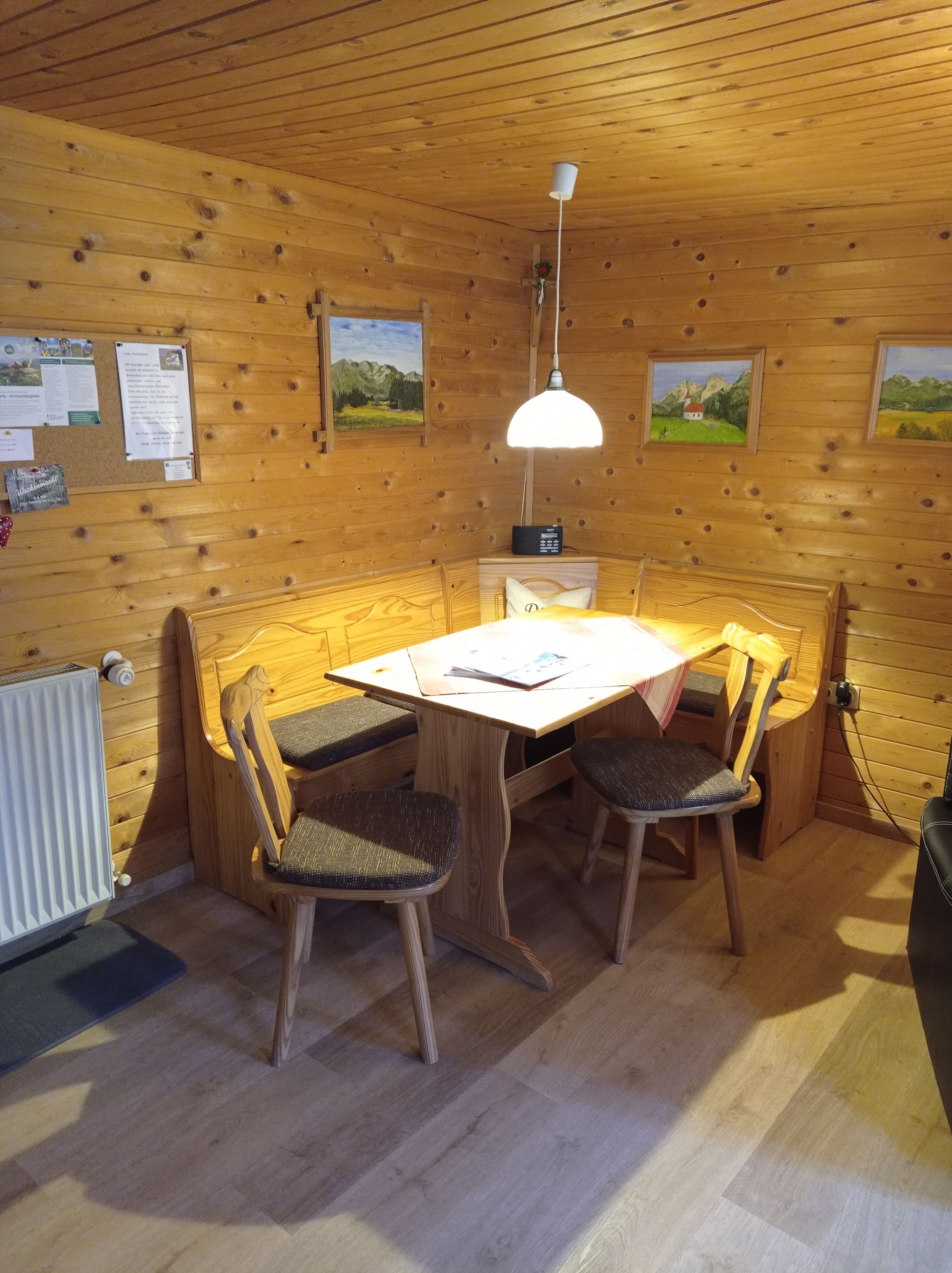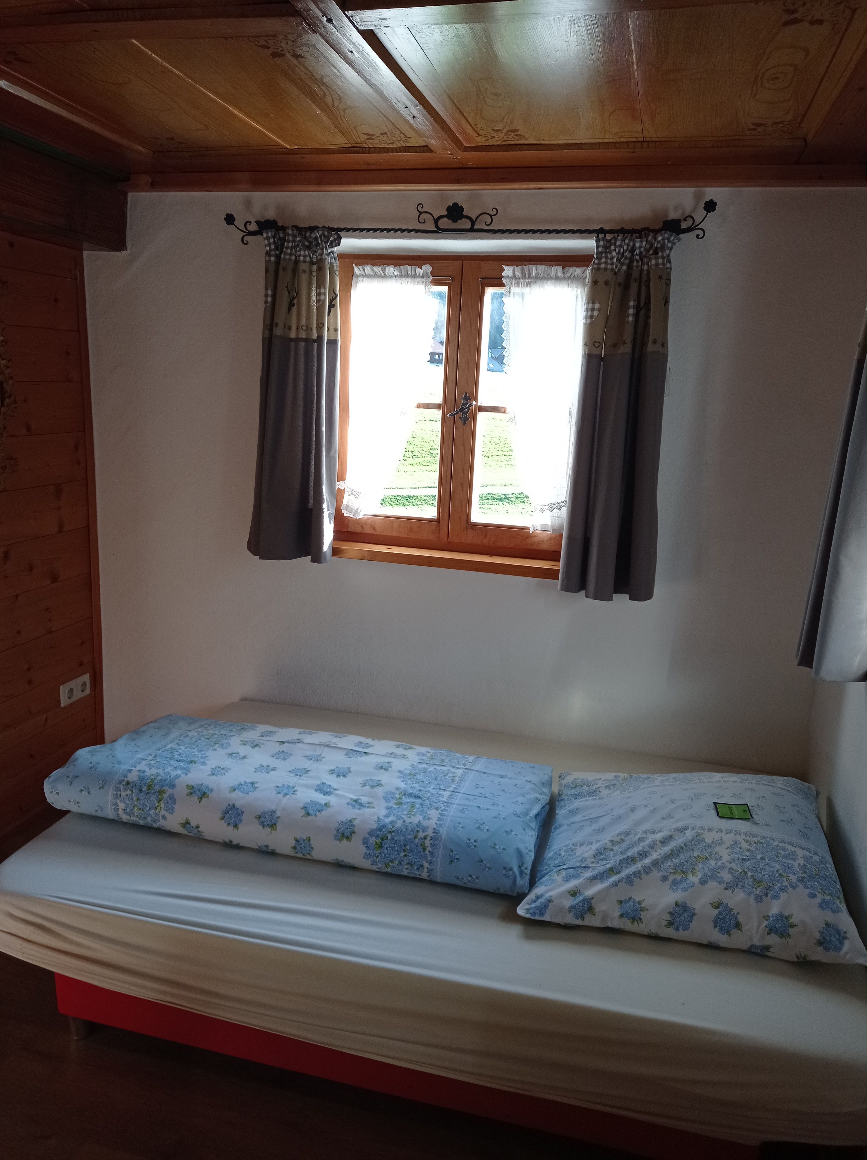 Sie verfügt über eine Wohnküche, ein Schlafzimmer und Dusche. Das WC befindet sich auch im 1. Stock, gegenüber der Ferienwohnung, wird aber ausschließlich durch die Gäste benützt.