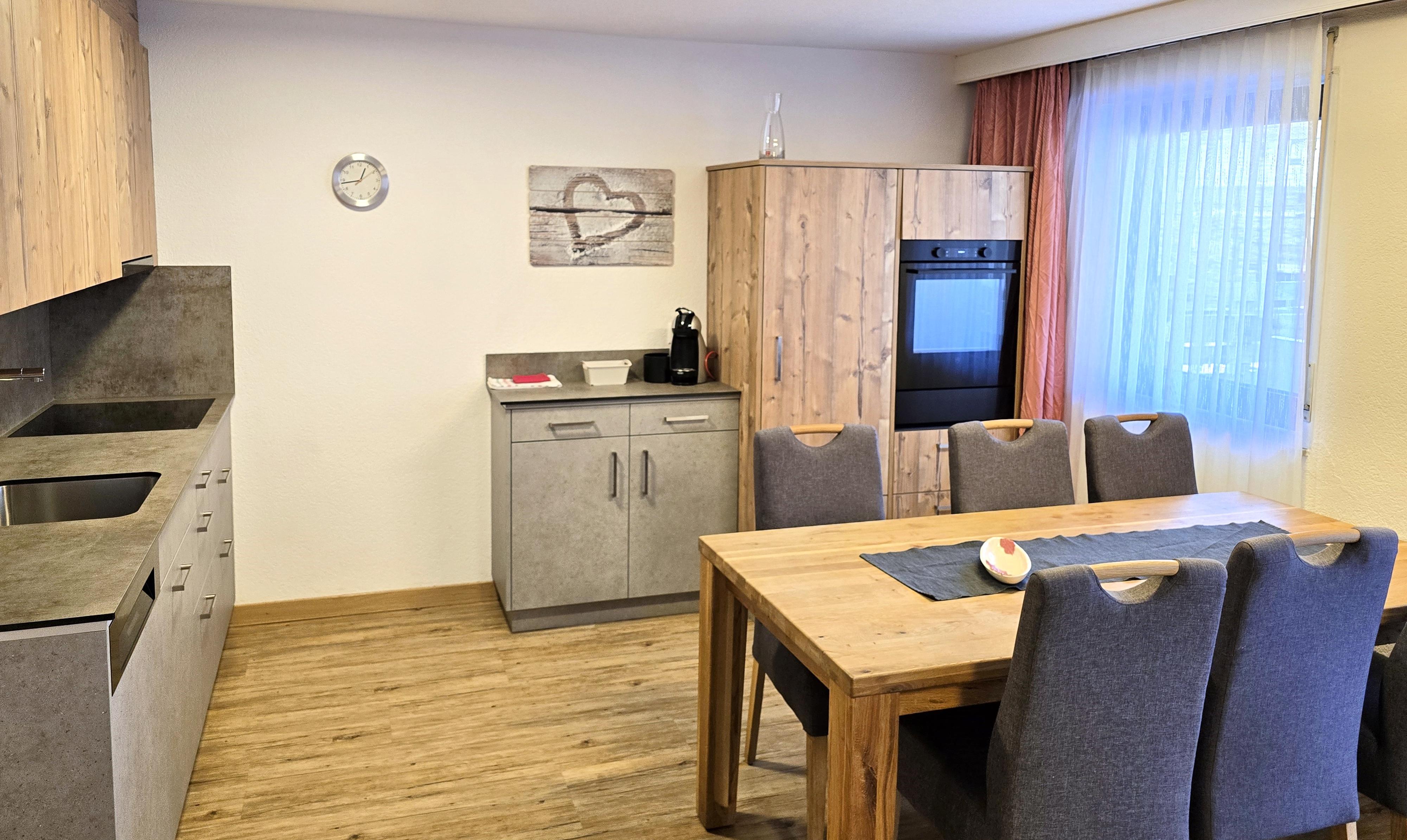 Die Wohnung Allalin wurde im 2019 renoviert. Sie hat 2 Doppelbettzimmer, WC mit Dusche, gut eingerichtete Küche mit Esstisch kombiniert mit Wohnzimmer und möglichem Zusatzbett (140x200). Radio, Sat-TV, W-LAN und Staubsauger sind vorhanden.
