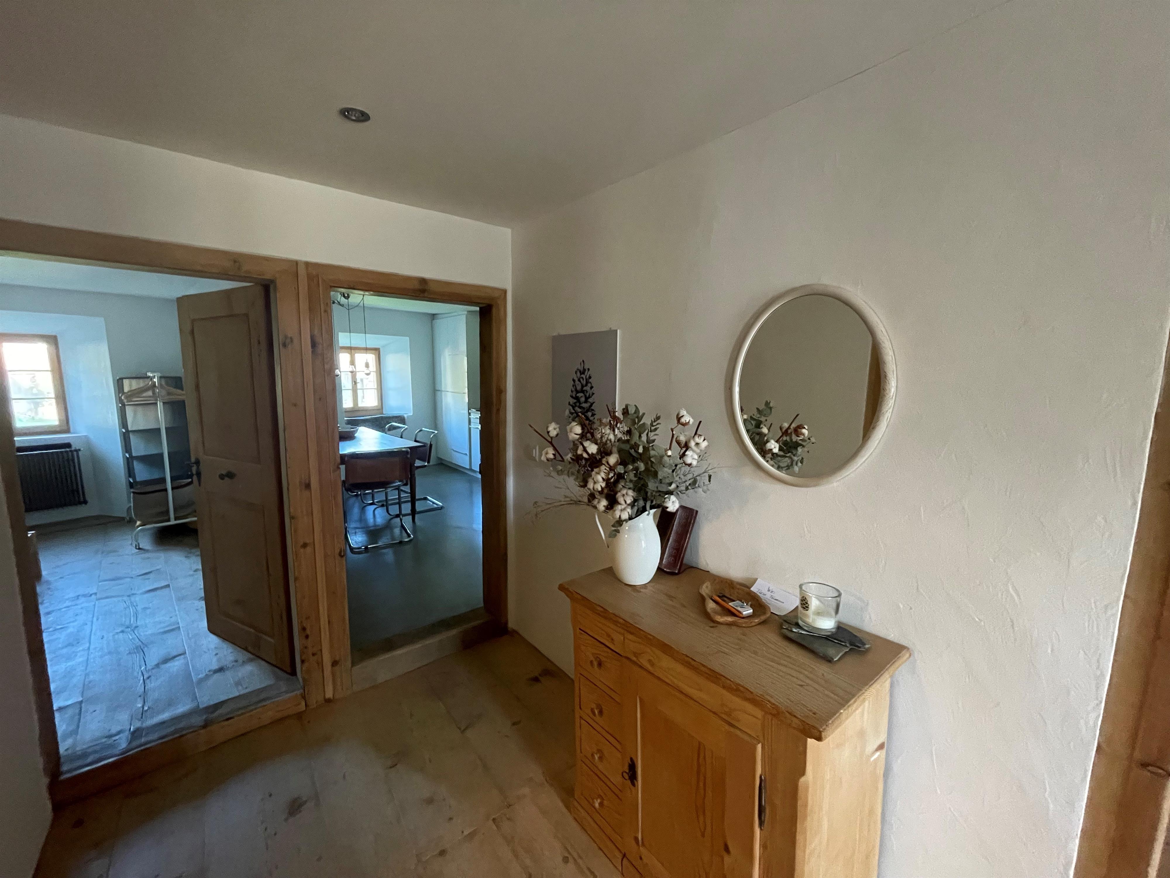 Die Wohnung befindet sich im 1. Obergeschoss. 2 Schlafzimmer, eines mit 1 Doppelbett das andere mit einem französischem Bett. Zusatzmatratze/Bettsofa vorhanden. Allenfalls auch auf Anfrage für 5 Personen nutzbar. Bett-, Küchen- und Frottéewäsche vorhanden. Separate Küche mit Backofen, Kühlschrank, Geschirrspülmaschine, Wasserkocher, Kaffeemaschine, Racletteofen und Fondue Caquelon. Bad/ WC, Haartrockner. Nichtraucherwohnung. TV. Tripp Trapp Kinderstuhl vorhanden (bitte melden), Spielsachen. Garten, Gartensitzplatz. Parkplatz (ca. 100 m vom Haus entfernt). Waschmaschine und Wäschetrockner im Haus. WLAN/Internet. Ski- und Abstellraum. Haustiere auf Anfrage erlaubt (10.-/Nacht).