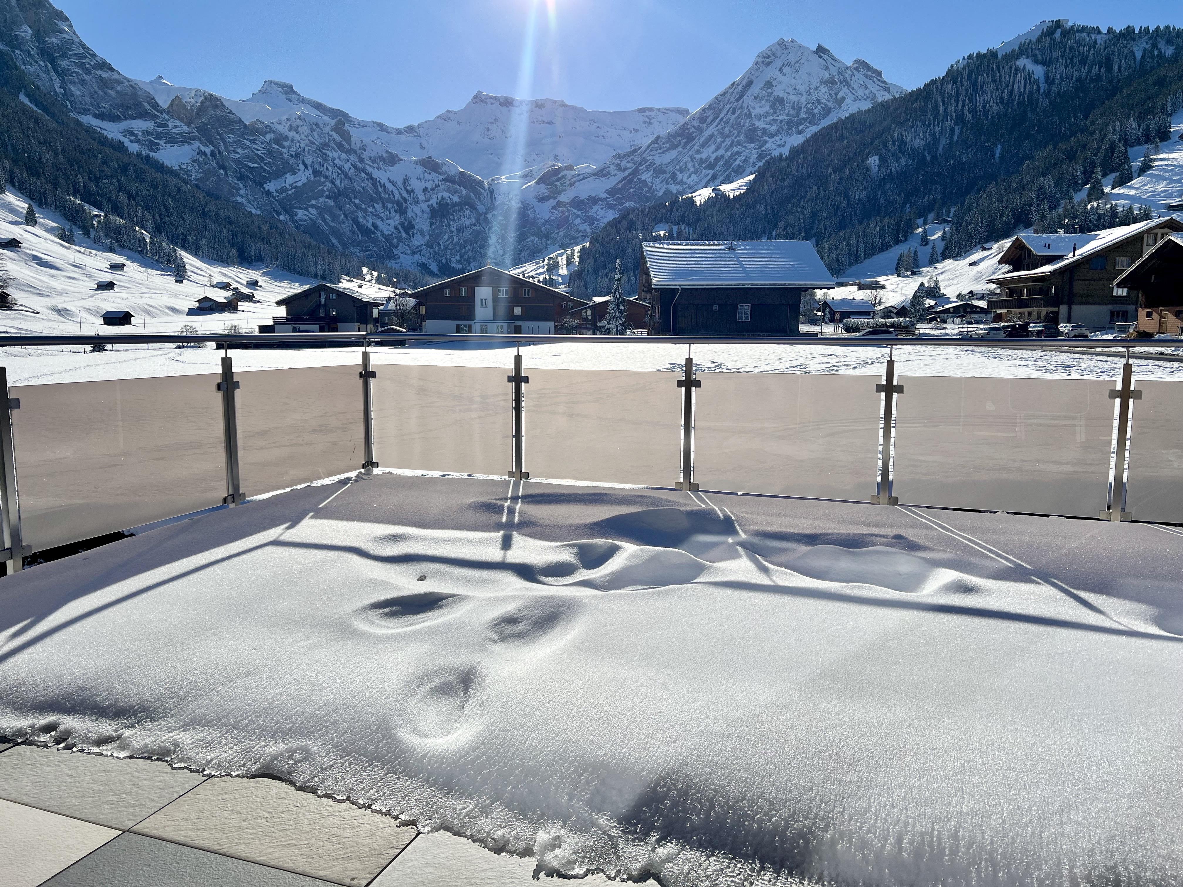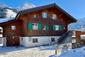 Chalet Falkiport (2023 total saniert, erweitert). Optimale Lage mit herrlicher Sicht auf die Berge.