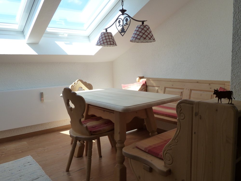 Die gemütliche Essecke lädt Sie zu einer guten Mahlzeit ein. Und an unseren Waginger Bauernschrank werden Sie sicher auch Ihre Freude haben.