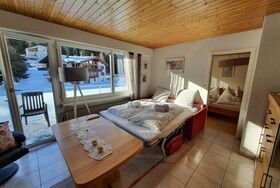 Gemütliche 2.5 Zimmerwohnung für bis zu vier Personen an sonniger Lage. Die Ferienwohnung befindet sich im Appartmenthaus Montana und liegt nur fünf Minuten von der Talstation Fadail und der Loipe entfernt. Im Sommer können Sie direkt von der Haustüre auf die Wander- und Velowege zugreifen. Am besten geeignet für zwei Erwachsene und zwei Kinder/Jugendliche. Auch möglich für drei Erwachsene.