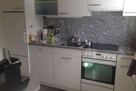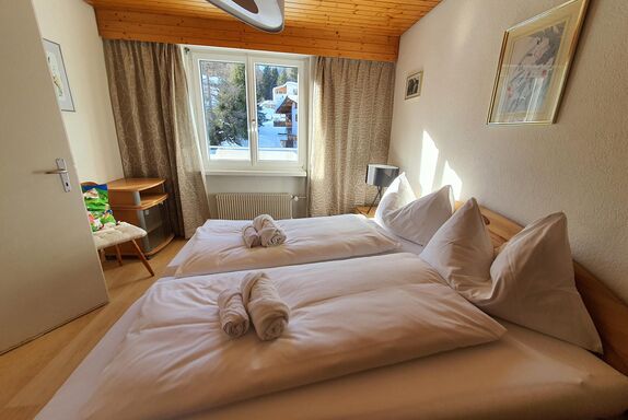 2.5-Zimmerwohnung im 3. Geschoss für 4 Personen, bestehend aus Wohnzimmer, Küche, 1 Schlafzimmer, Bad/WC sowie geräumiger, sonniger Balkon. Schlafsofa im Wohnzimmer. Die Küche verfügt über alles, das man in einem gemütlichen Urlaub braucht (Nespressomaschine, Wasserkocher, Geschirrspüler, Backofen, Kühlschrank mit Gefrierfach, Raclette-Ofen, Fondue-Caquelon etc.)