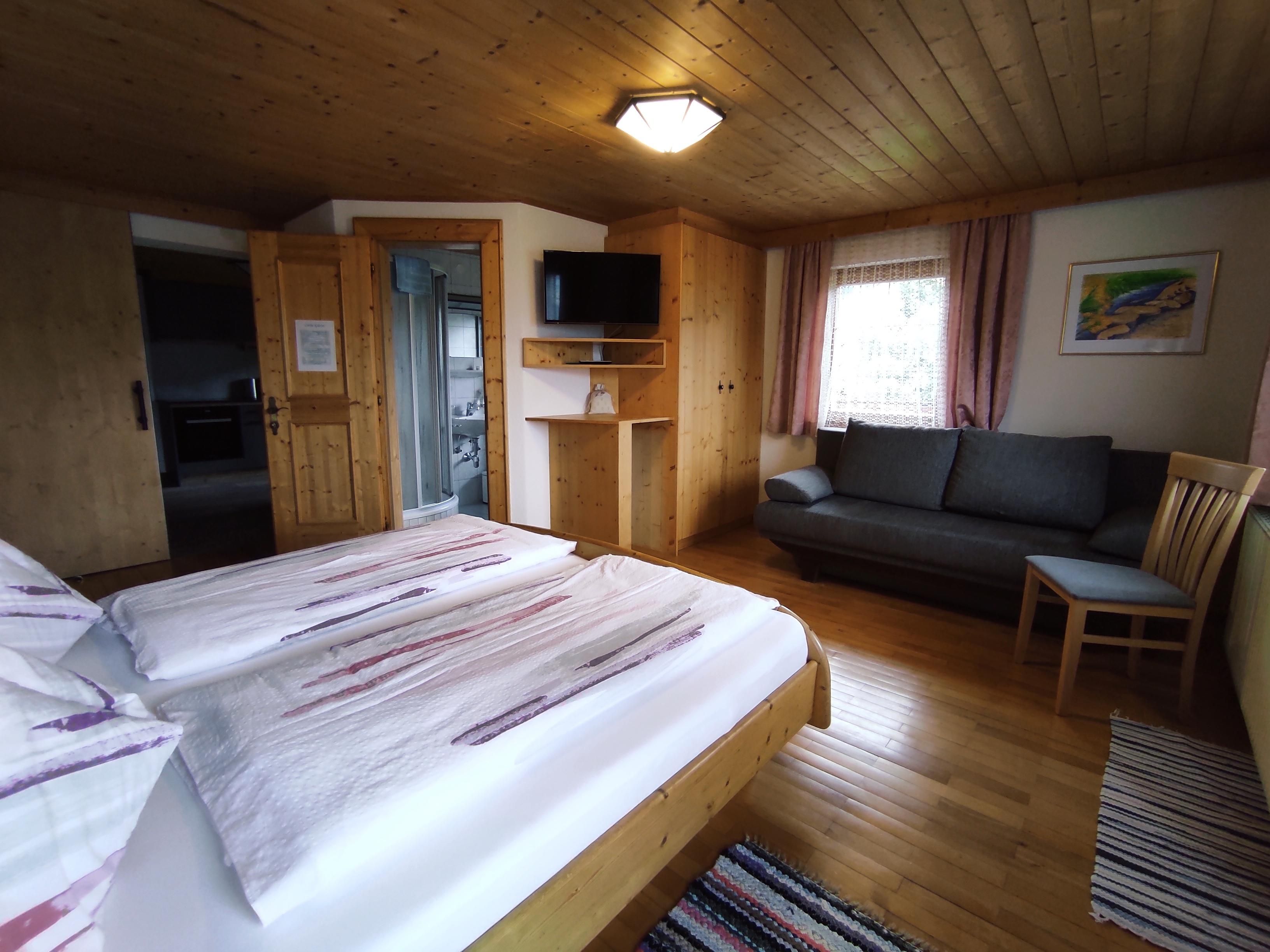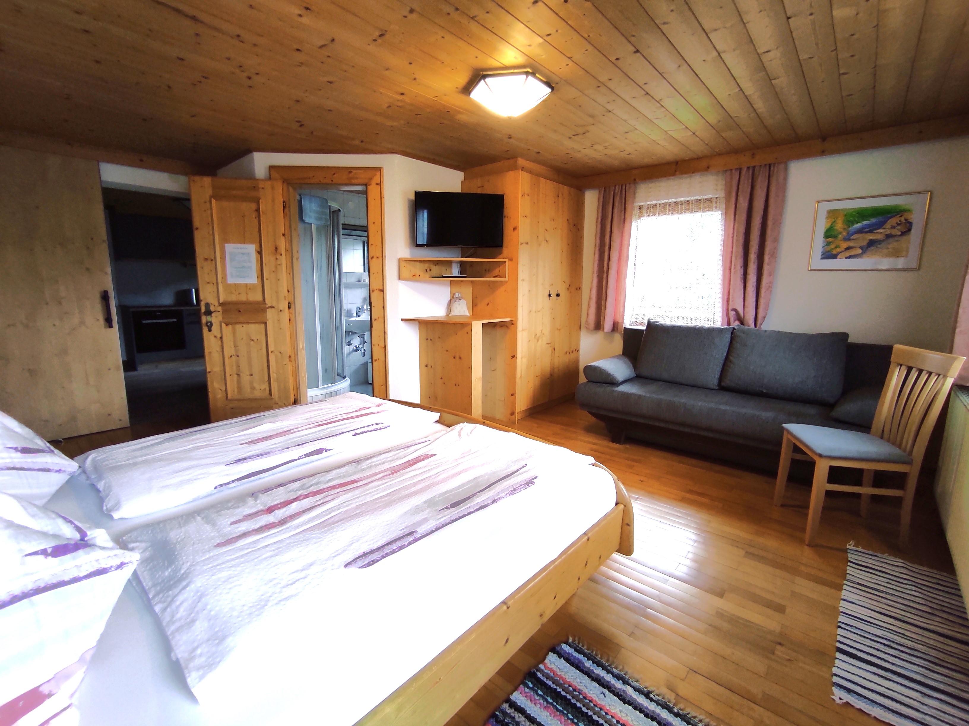 Appartement (ca. 40 m²) mit 1 Schlafzimmer mit Dusche/WC u. Balkon, Garderobe, komplette Wohnküche, Sat-TV, sonnige u. ruhige Lage mit herrlicher Aussicht ins Hochpustertal. W-LAN, Bettwäsche u. Handtücher sind vorhanden. Brotservice!