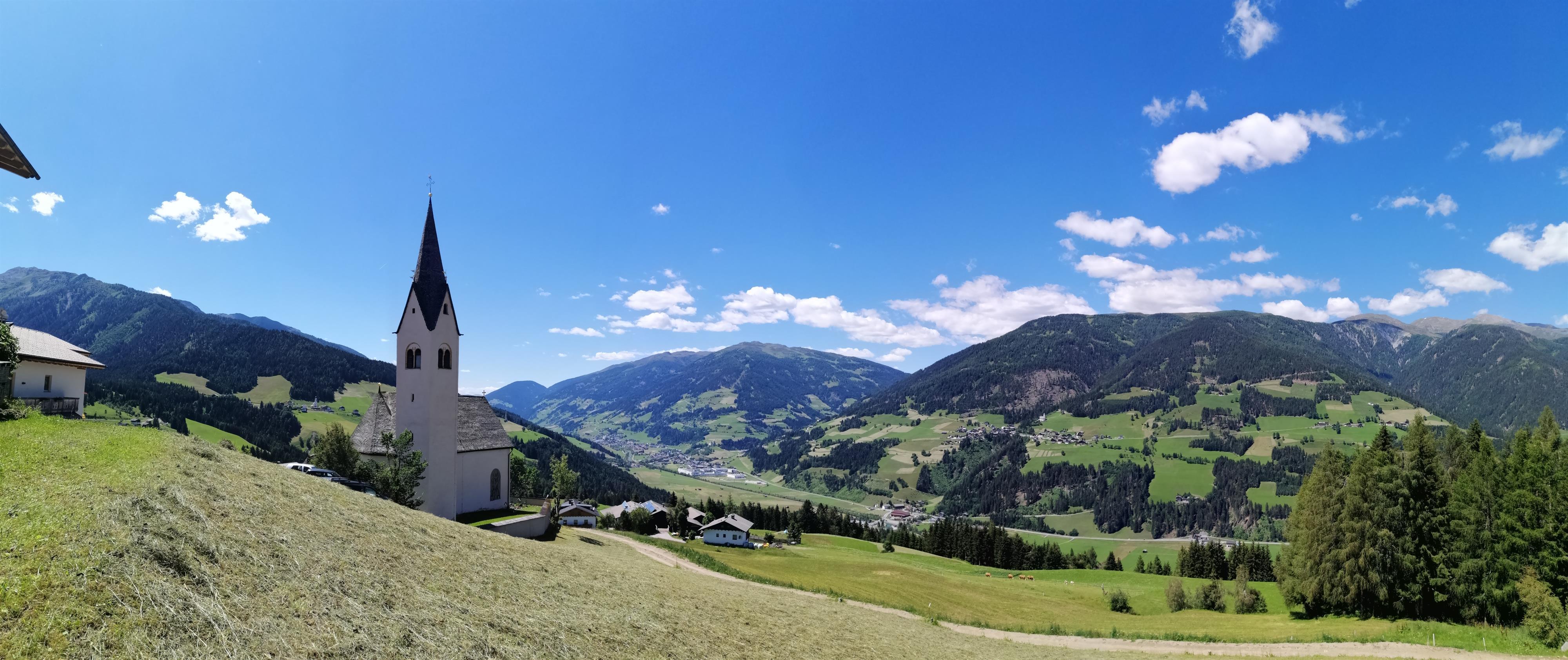 Appartement (ca. 40 m²) mit 1 Schlafzimmer mit Dusche/WC u. Balkon, Garderobe, komplette Wohnküche, Sat-TV, sonnige u. ruhige Lage mit herrlicher Aussicht ins Hochpustertal. W-LAN, Bettwäsche u. Handtücher sind vorhanden. Brotservice!