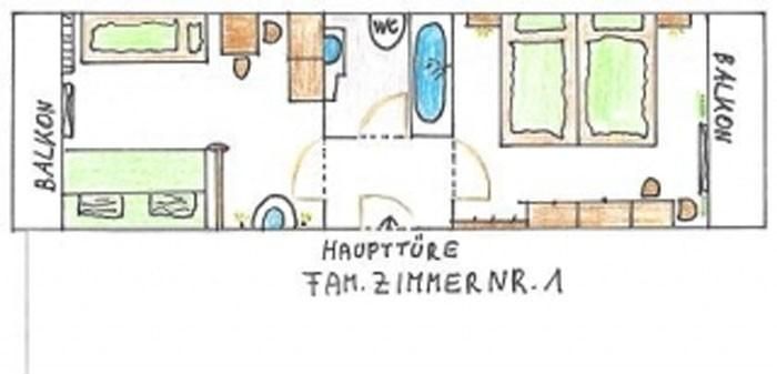 Modern eingerichtetes Familienzimmer mit separatem Bad ( Badewanne m. integr. Dusche ) und WC., Tv ,W-Lan im Haus vorhanden....