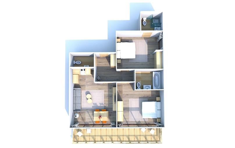 78 neue Apartments von 51 bis 95 m² für 2 bis 8 Personen, überzeugen durch Ihr modern-alpines Design. Balkon oder Terrasse erlauben stets einen traumhaften Ausblick auf die umliegenden Berge.