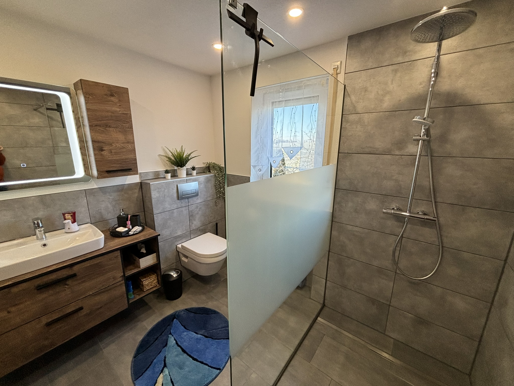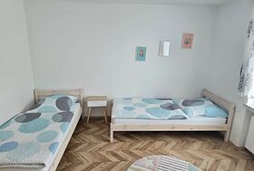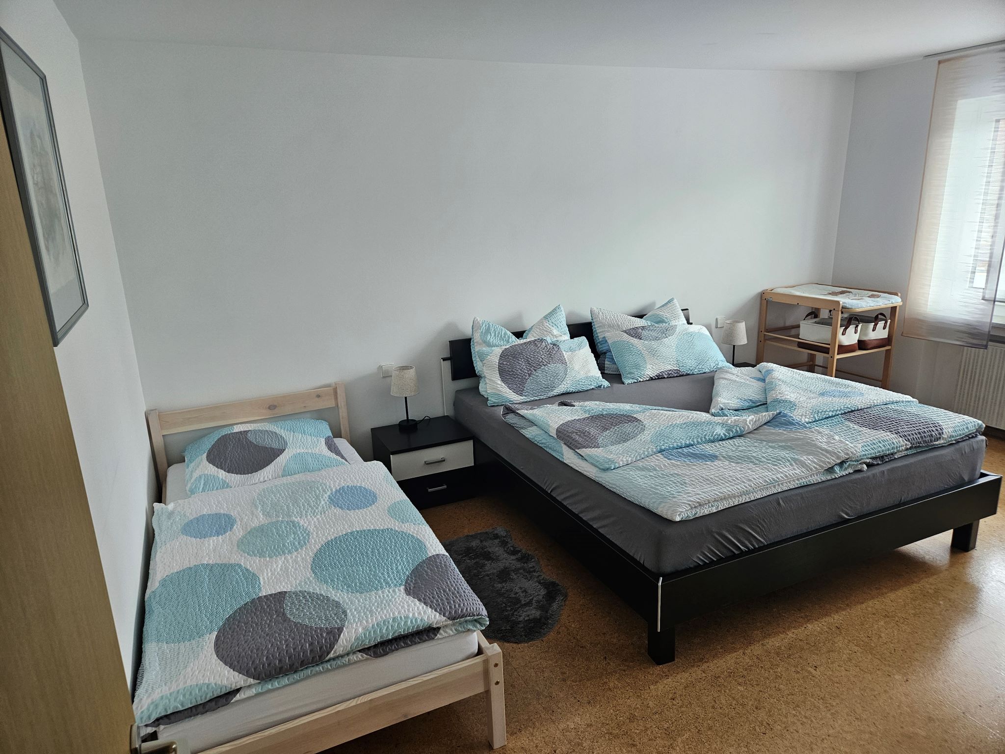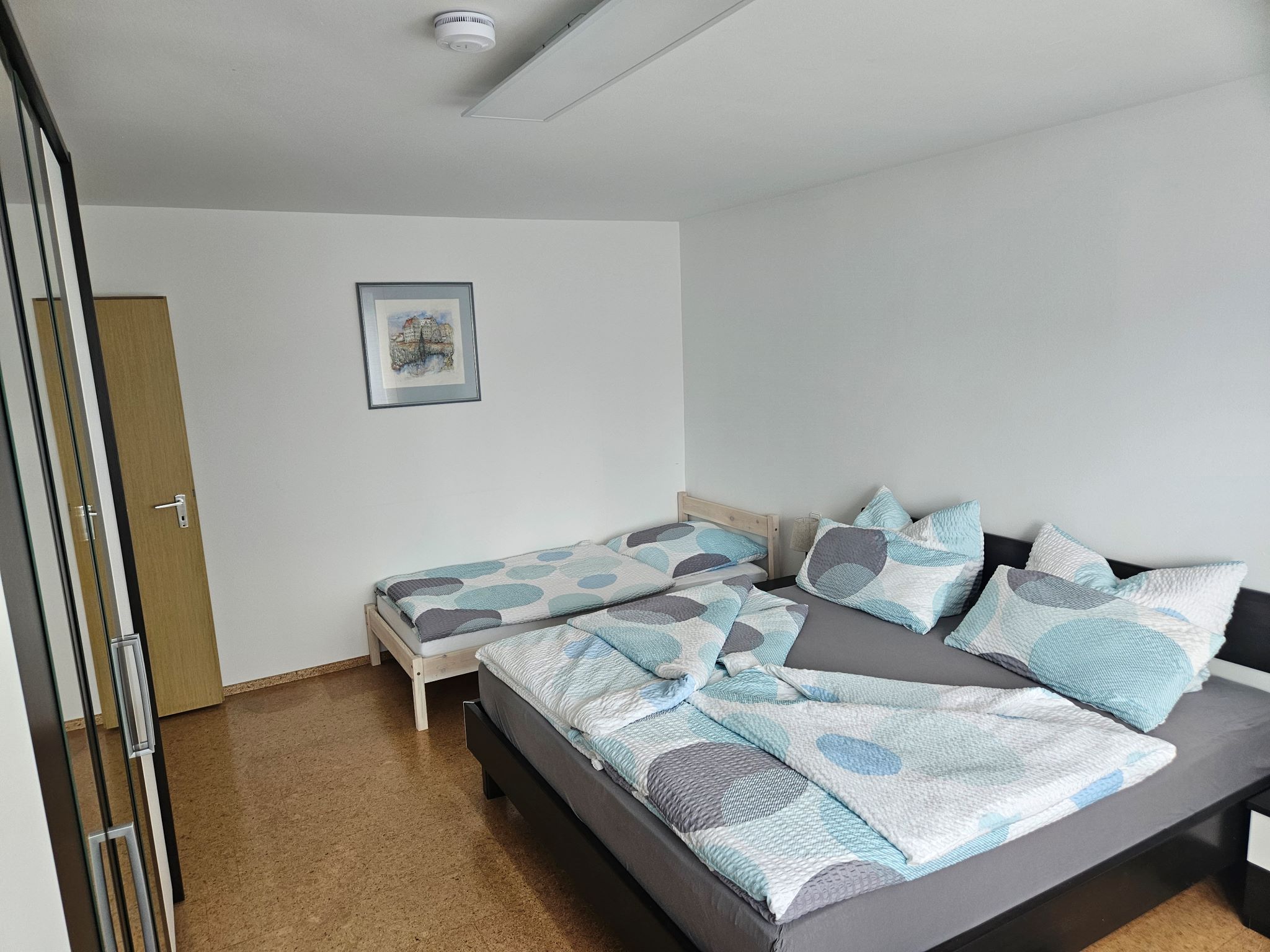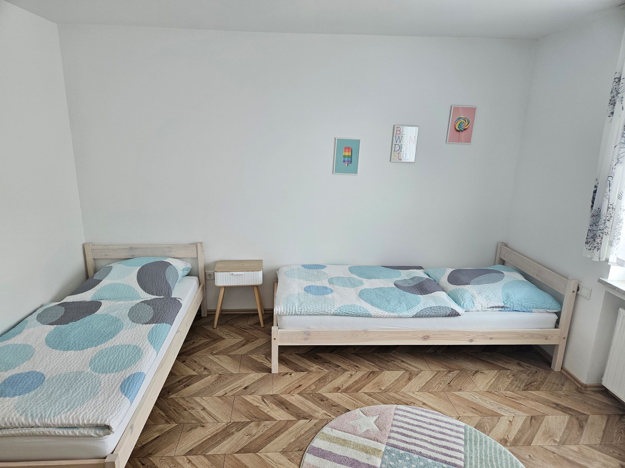 Unsere neu renovierte Ferienwohnung mit 90m² Wohnfläche auf der zweiten Etagen bietet Platz für 1-6 Personen. Das gemütliche Wohnzimmer mit Ecksofa und Flachbild-TV lädt zum Verweilen ein. Die komplett ausgestattete Küche mit Geschirrspüler, Kühlschrank inkl. Gefrierfach, Herd, Backofen, Wasserkocher, Eierkocher, Toaster, Mikrowelle, Mixer und Kaffeefilter lässt keine Wünsche offen. Die Ferienwohnung verfügt über 2 Schlafzimmer mit einem Doppelbett, zwei Einzelbetten, 2 ausziehbaren Betten im Bettkasten und ein Zugang zum Balkon. Das geräumige Badezimmer mit ebenerdiger Dusche, großem Spiegel und Handtuchtrockner rundet das Gesamtbild ab. Zum Reinigen Ihrer Kleidung stehen eine Waschtrockner im Haus zur Verfügung. Vor allem im Sommer können Sie entspannte Grillabende in unserem Garten verbringen. Bitte beachten Sie, dass keine Haustiere erlaubt sind. Das WLAN und den Parkplatz vor dem Haus können Sie kostenfrei nutzen.