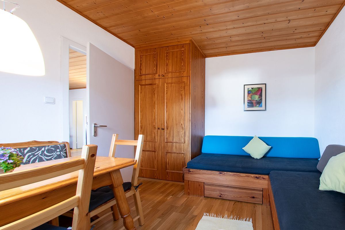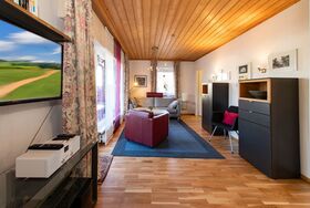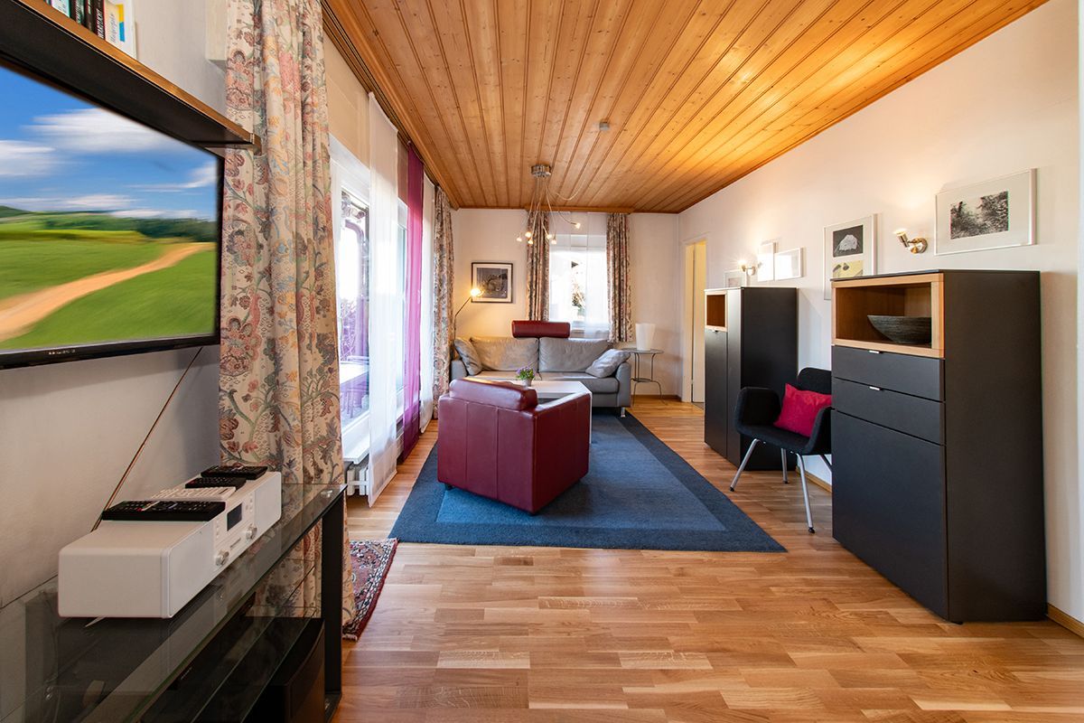 Das bequem eingerichtete Wohnzimmer ist mit Kabelfernsehen, Radio und blueray-Player ausgestattet, ein Internet-Anschluss steht zur Verfügung.