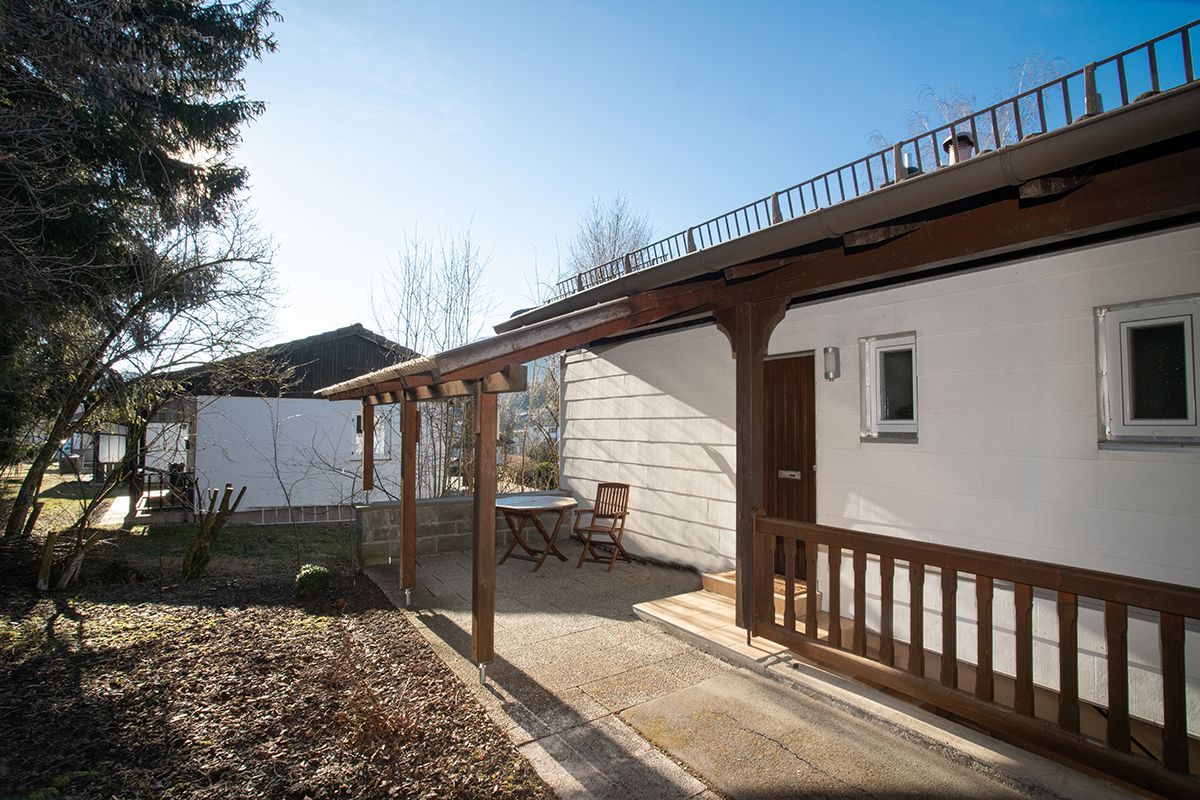 Hinter dem großzügig überdachten Eingangsbereich (Nord-Ost-Terrasse) erwartet Sie ein ruhig am Hang gelegenes, gemütlich und funktional ausgestattetes Ferienhaus mit Zentralheizung.