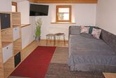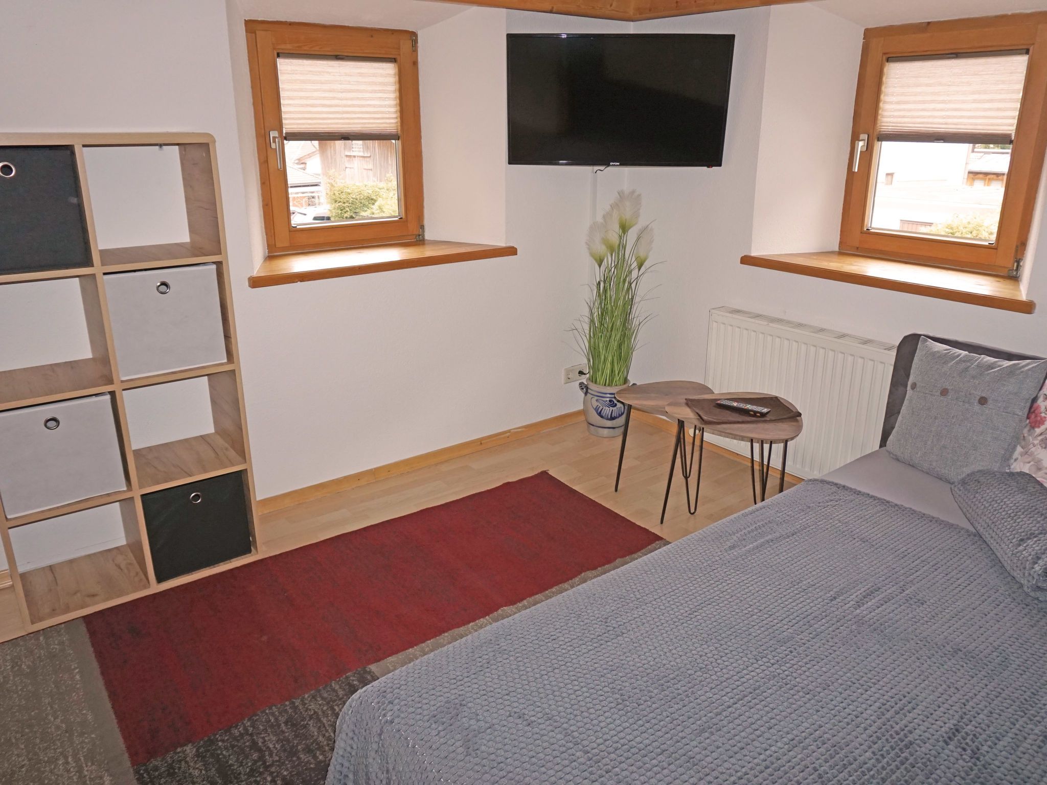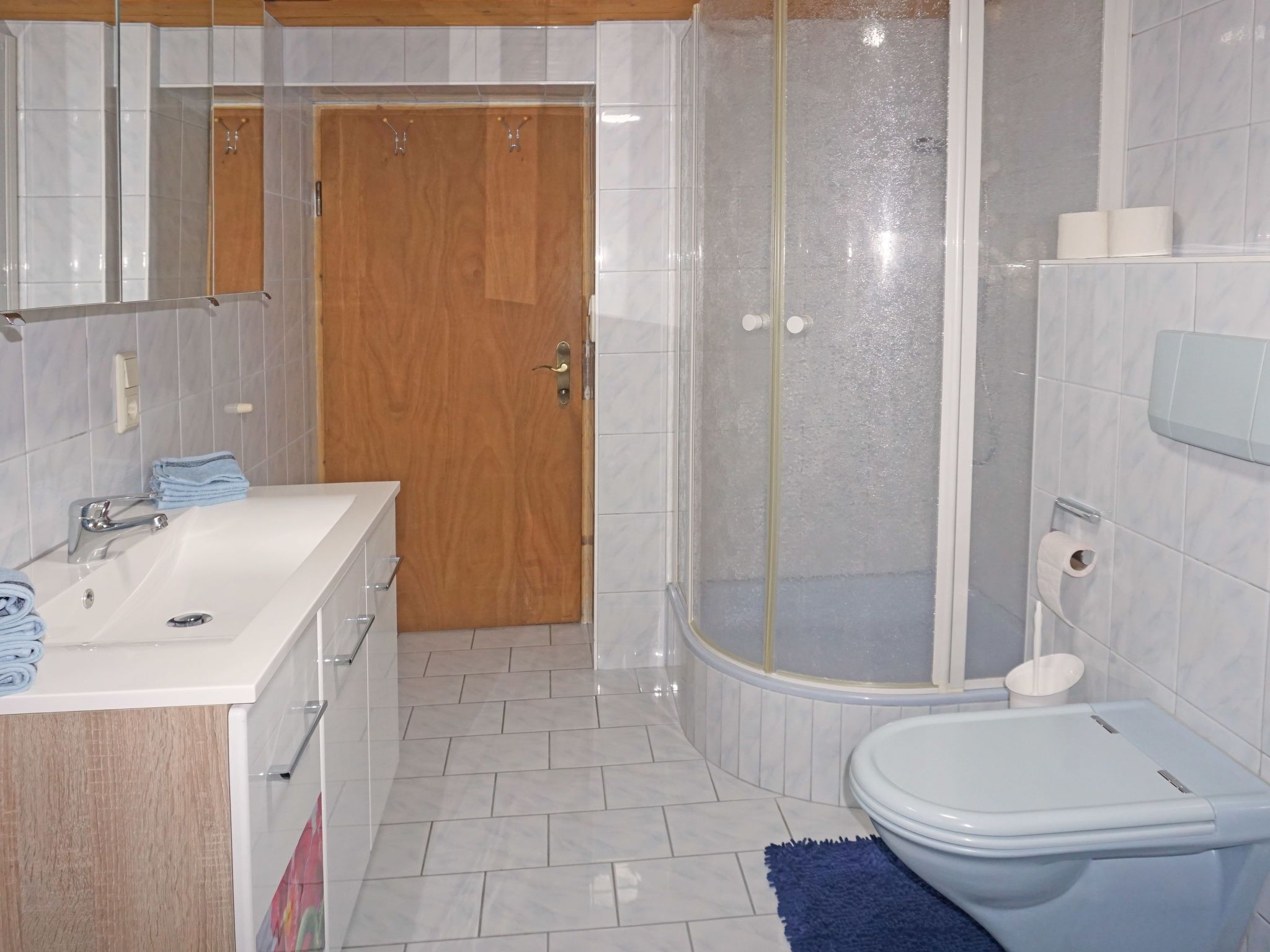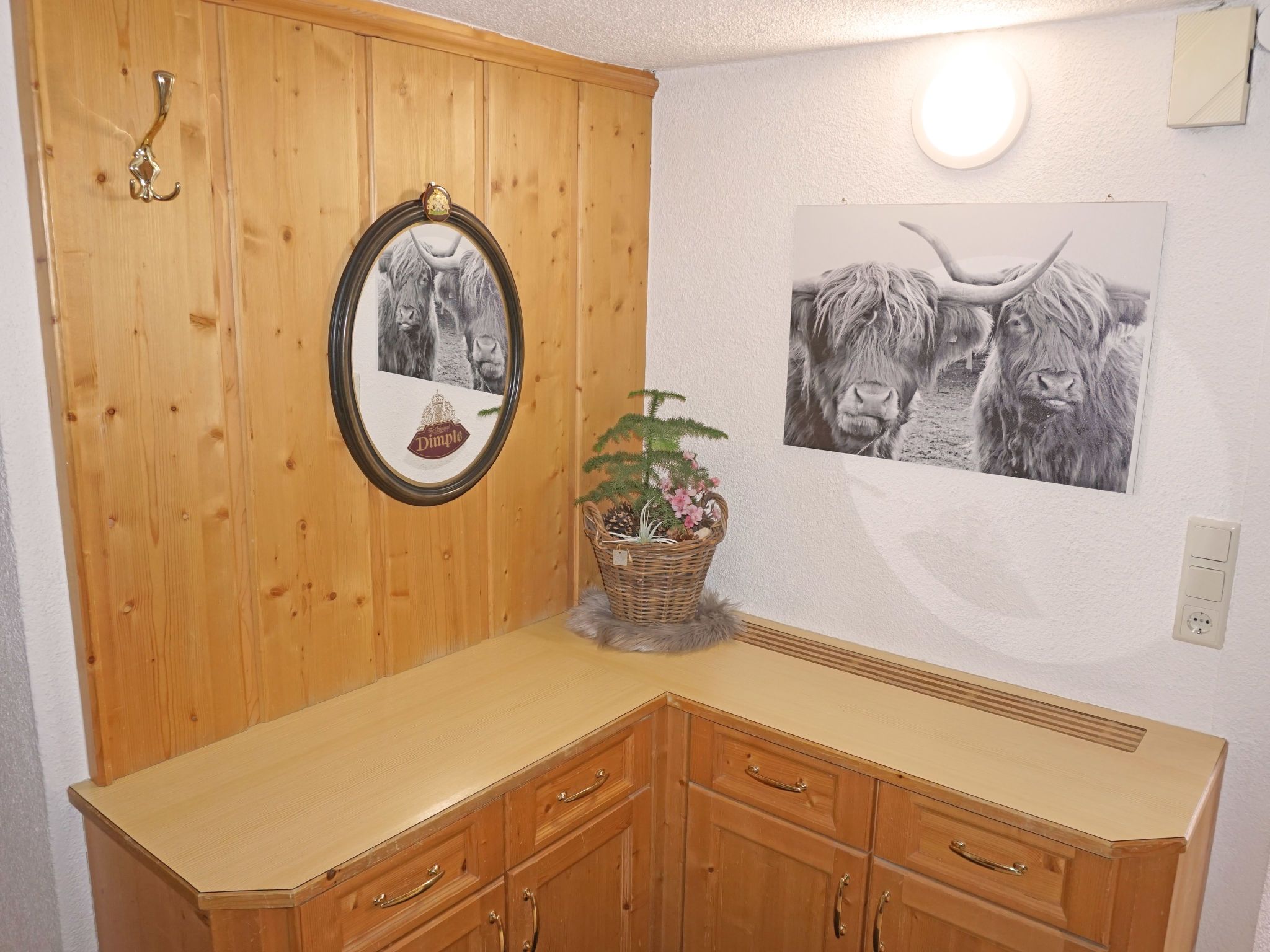 Sandra Falch, 3-Zimmer-Wohnung 65 m2 im 1. Stock. Komfortabel und gemütlich eingerichtet: Eingang. 1 Zimmer mit 1 x 2 Etagenbetten, 1 franz. Bett. Wohn-/Schlafzimmer mit 1 Diwanbett und TV (Flachbildschirm). Grosse Wohnküche (4 Glaskeramikplatten, Toaster, Wasserkocher, Mikrowelle, Tiefkühler, elektrische Kaffeemaschine, Kapseln für die Kaffeemaschine (Erstausstattung) gratis) mit Essecke. Bad/Dusche/WC mit Eckbadewanne. Heizung. Holzdielenboden. Grosse Terrasse 30 m2, Südlage und Ostlage. Terrassenmöbel. Schöne Sicht auf die Berge. Zur Verfügung: Internet (Wireless LAN, gratis). Bitte beachten: geeignet für Familien. Nichtraucher-Unterkunft. Maximal 3 Haustiere/Hunde erlaubt. Kein Fahrstuhl.