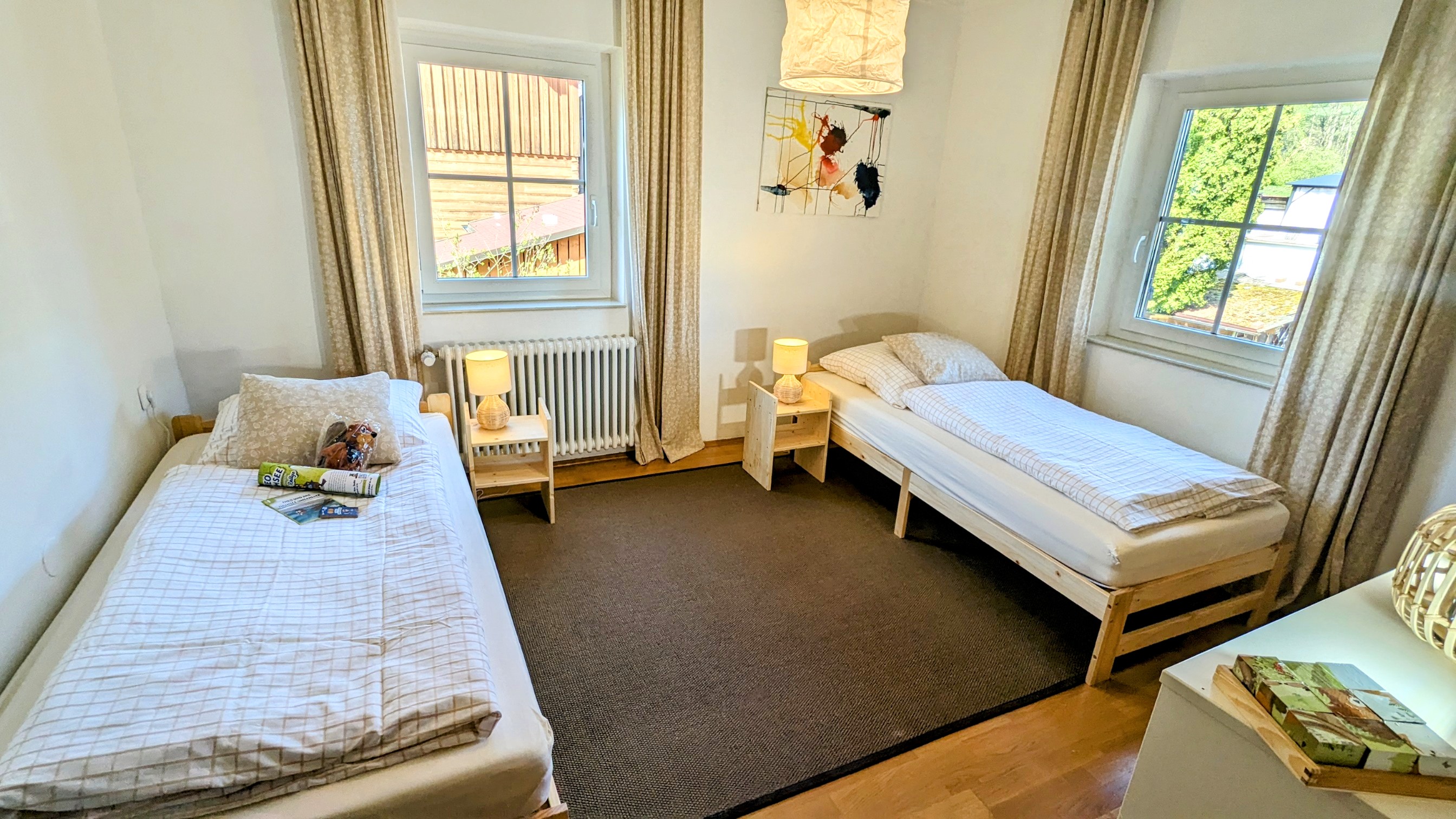 Unsere Ferienwohnung bietet ein gemütliches Schlafzimmer mit einem Doppelbett und einem weiteren Schlafzimmer mit zwei Einzelbetten inklusive Bettwäsche. Das Badezimmer verfügt über eine Badewanne mit Duschvorrichtung.Handtücher und Duschtücher sind vorhanden. In der Küche und im Essbereich finden Sie alle Geräte und Utensilien, die Sie für einen angenehmen Aufenthalt benötigen. Genießen Sie die schöne Aussicht auf den Untersberg und den Predigtstuhl von Ihrem Balkon aus. Unsere Wohnung liegt in einer ruhigen Gegend und ist der ideale Ausgangspunkt für Wanderungen und Fahrradtouren. Ein Babybett und ein Hochstuhl stellen wir Ihnen gerne zur Verfügung Freuen Sie sich auf einen entspannten Urlaub in dieser charmanten Ferienwohnung!