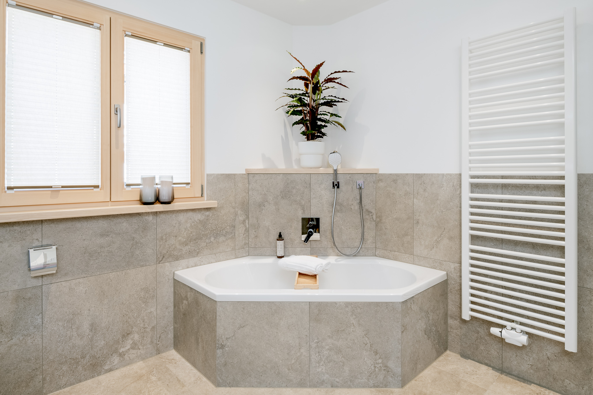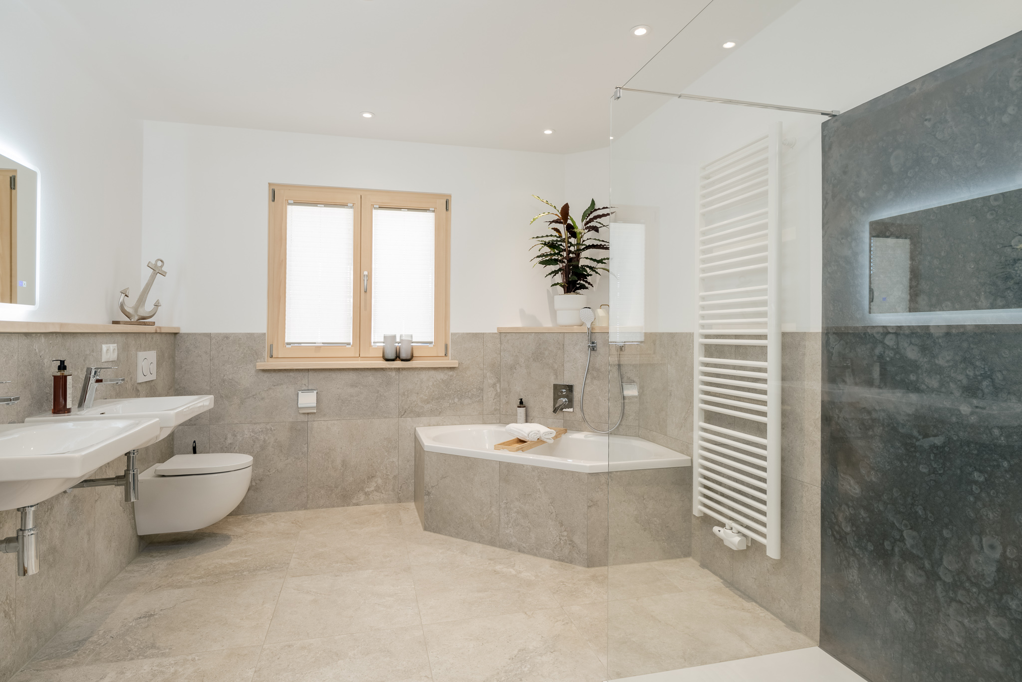 Das Badezimmer bietet sowohl eine Dusche als auch eine komfortable Badewanne. Hier kannst Du dich nach einem ereignisreichen Tag entspannen. Zusätzlich gibt es in dem Apartment noch ein Gäste-WC.