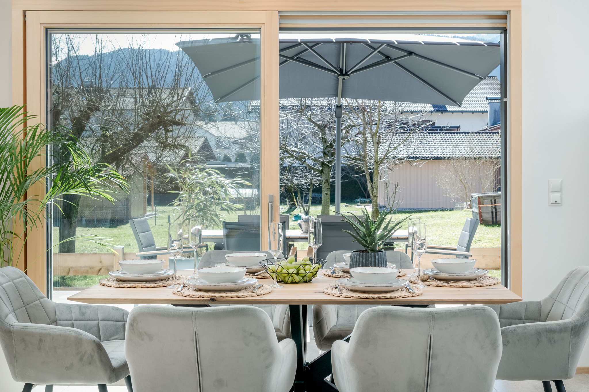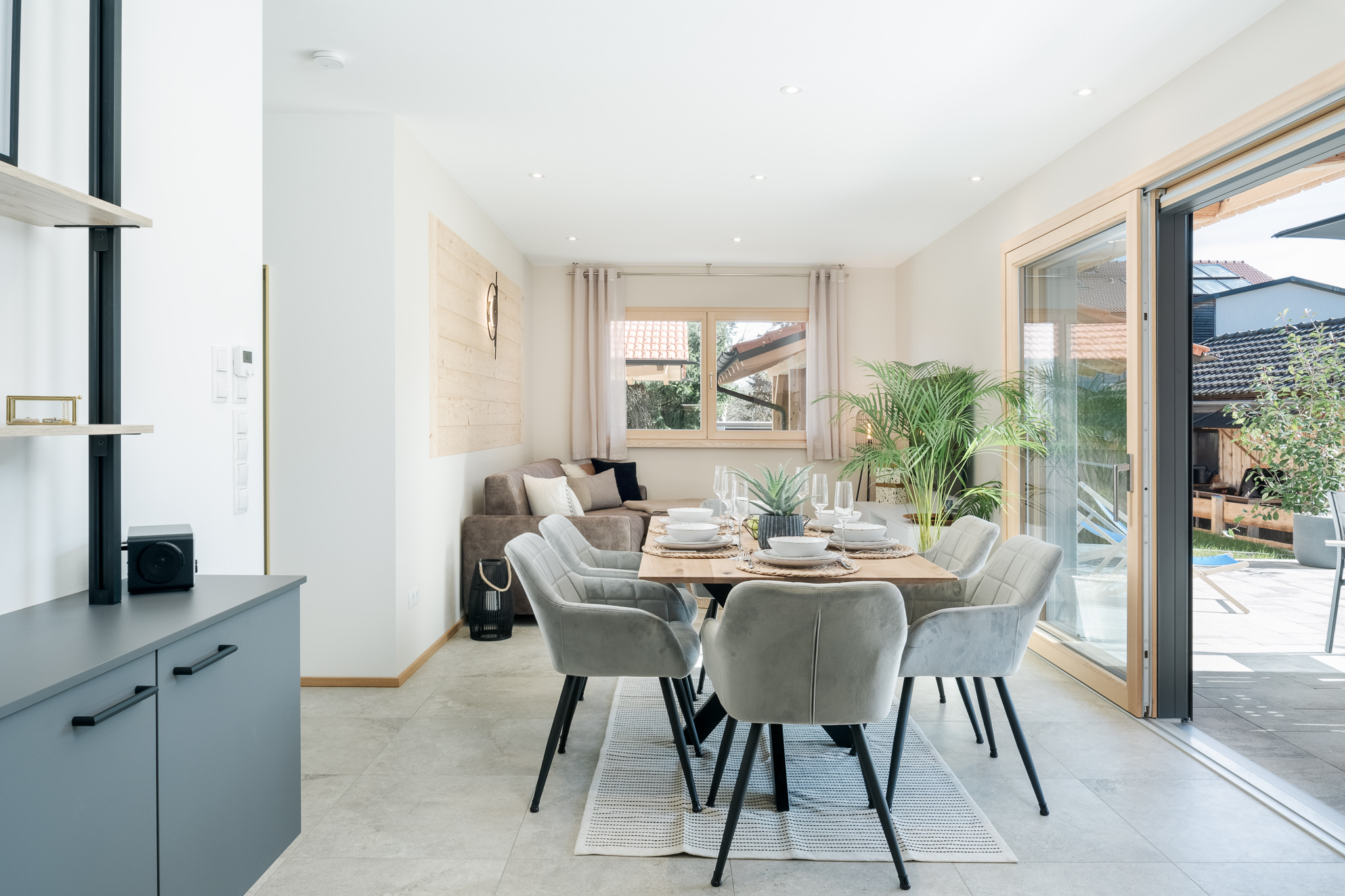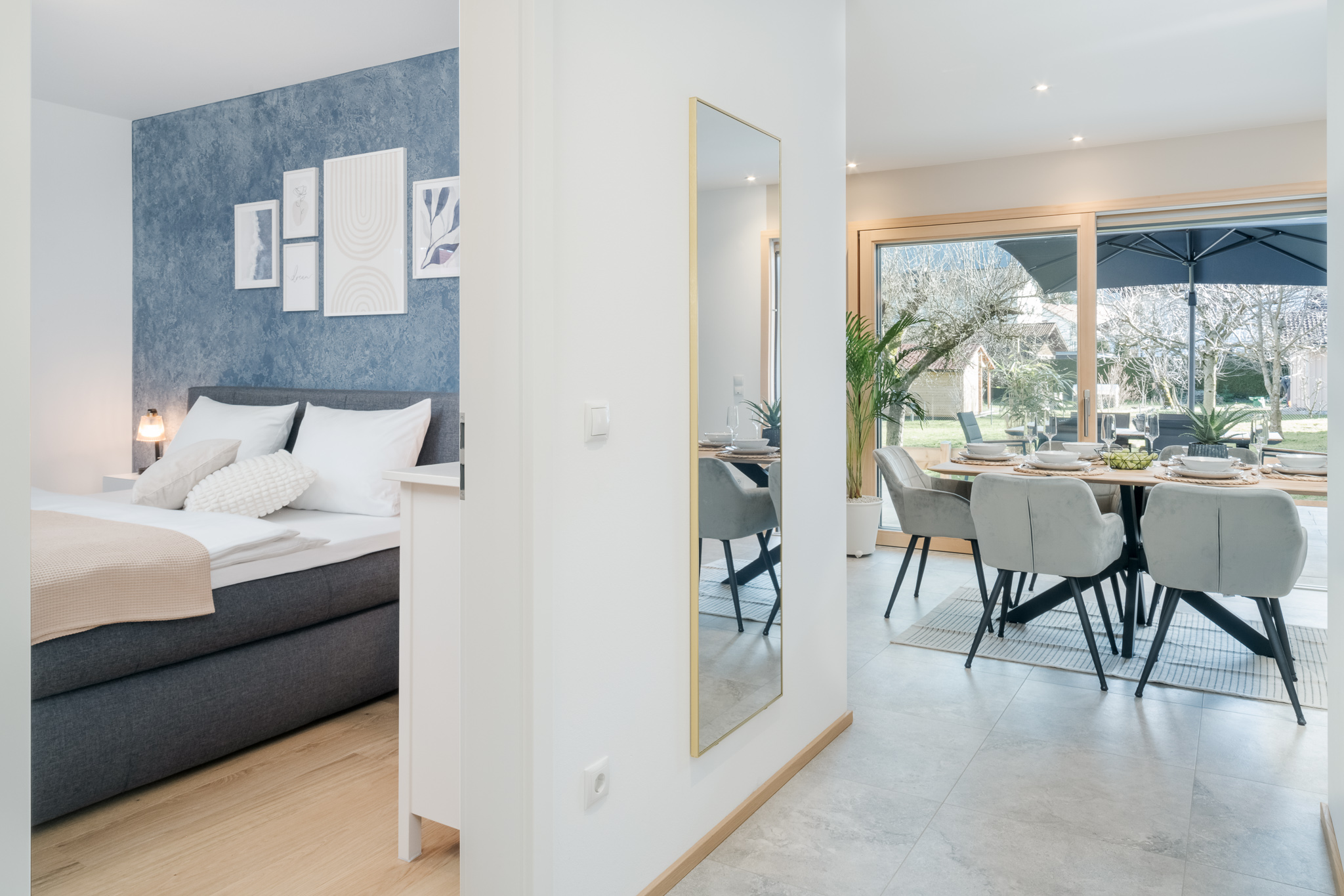 Die Ferienwohnung liegt in einem neu errichteten Massivholzhaus. Hier erwartet Dich eine hochwertige Ausstattung und ein frisches, modernes Design.